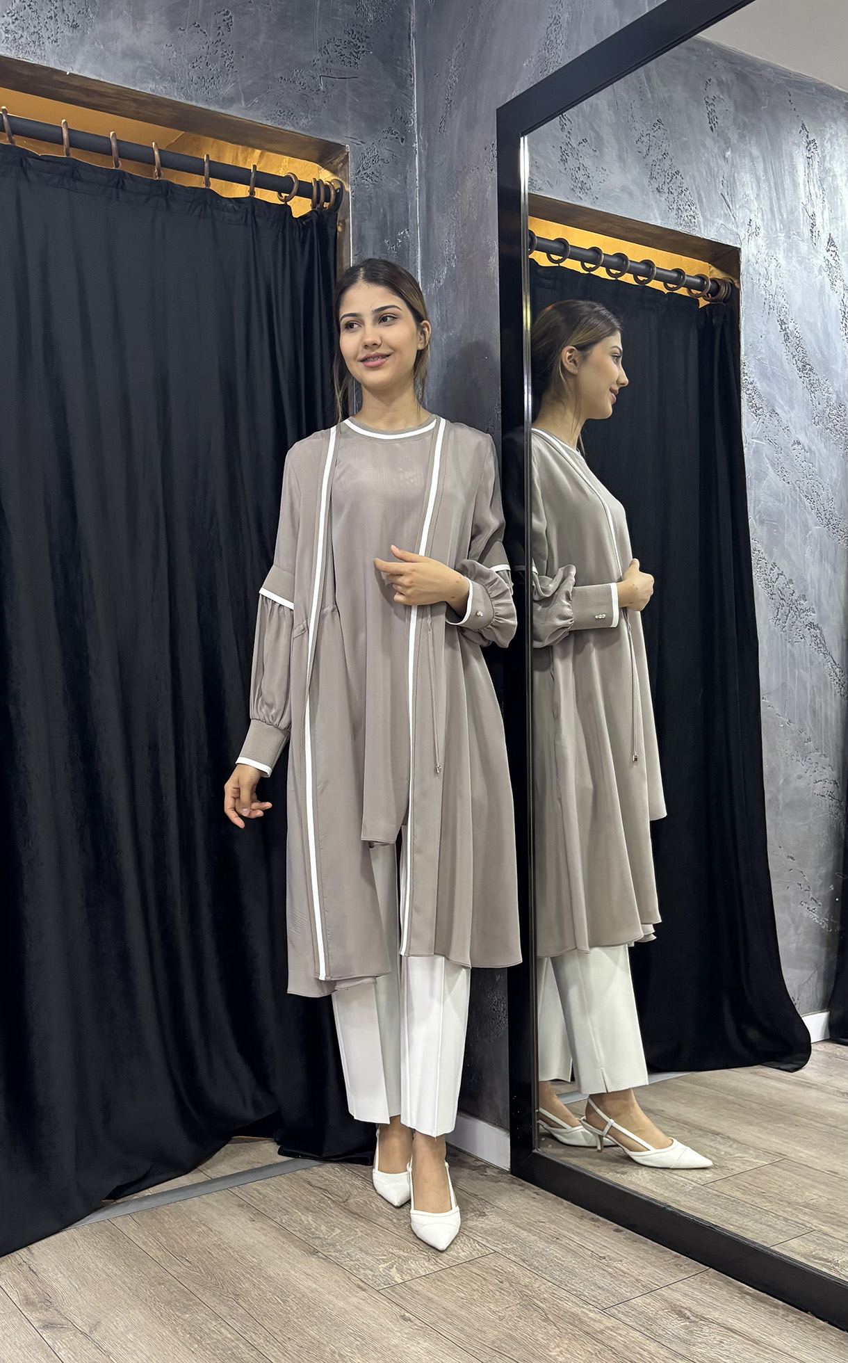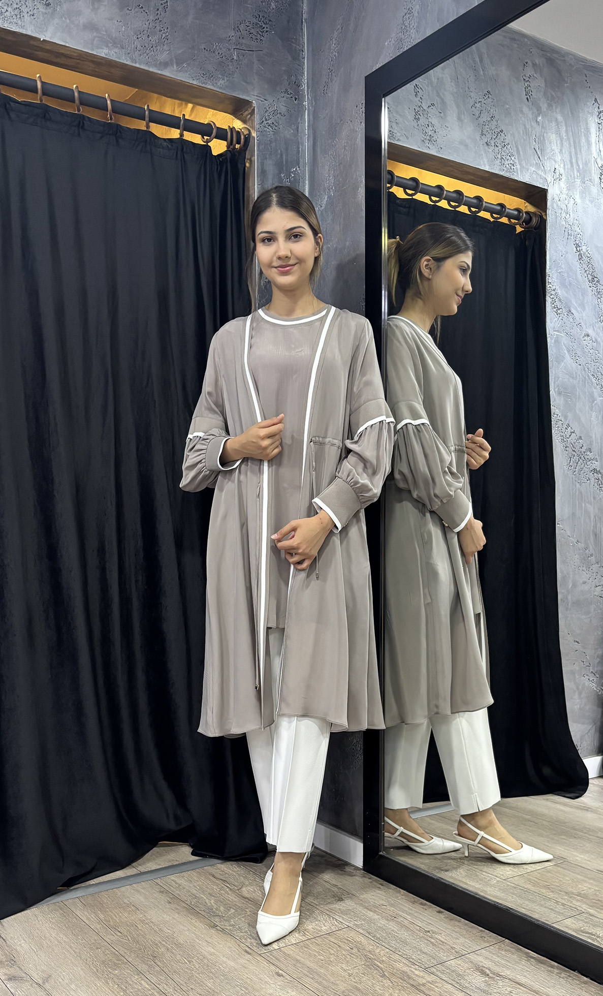 Miss Dalida Yakası Çizgi Detaylı Kolsuz Cupra Tunik MİNK