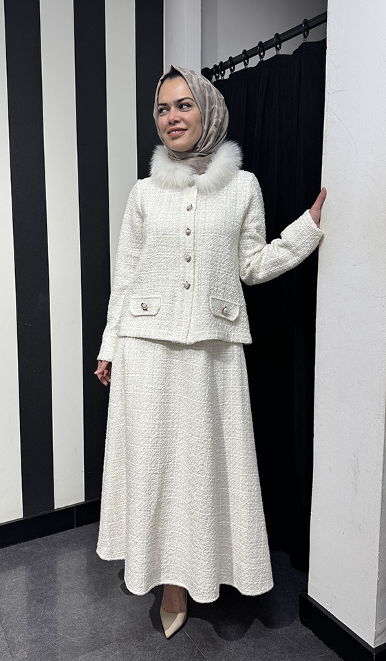Miss Dalida Yakası Kürklü Tüvit Ceket EKRU