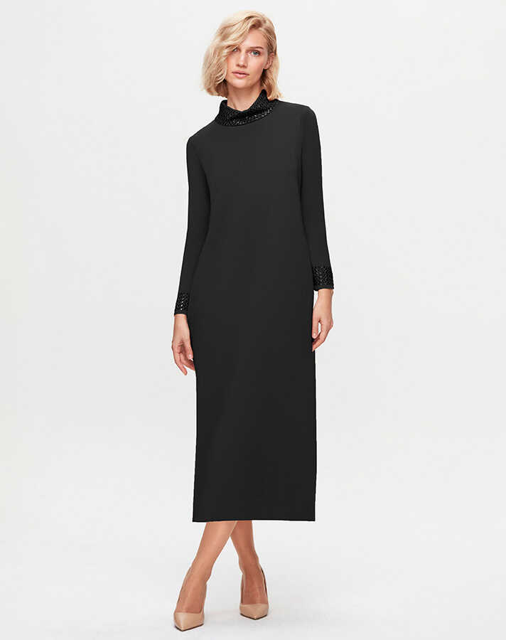 Miss Dalida Yakası Ve Bileği Taş Detaylı Elbise BLACK