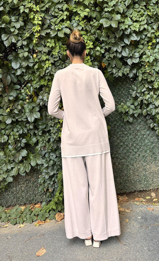 Miss Dalida Önü Dikişli Bol Paça Pantolon Stone
