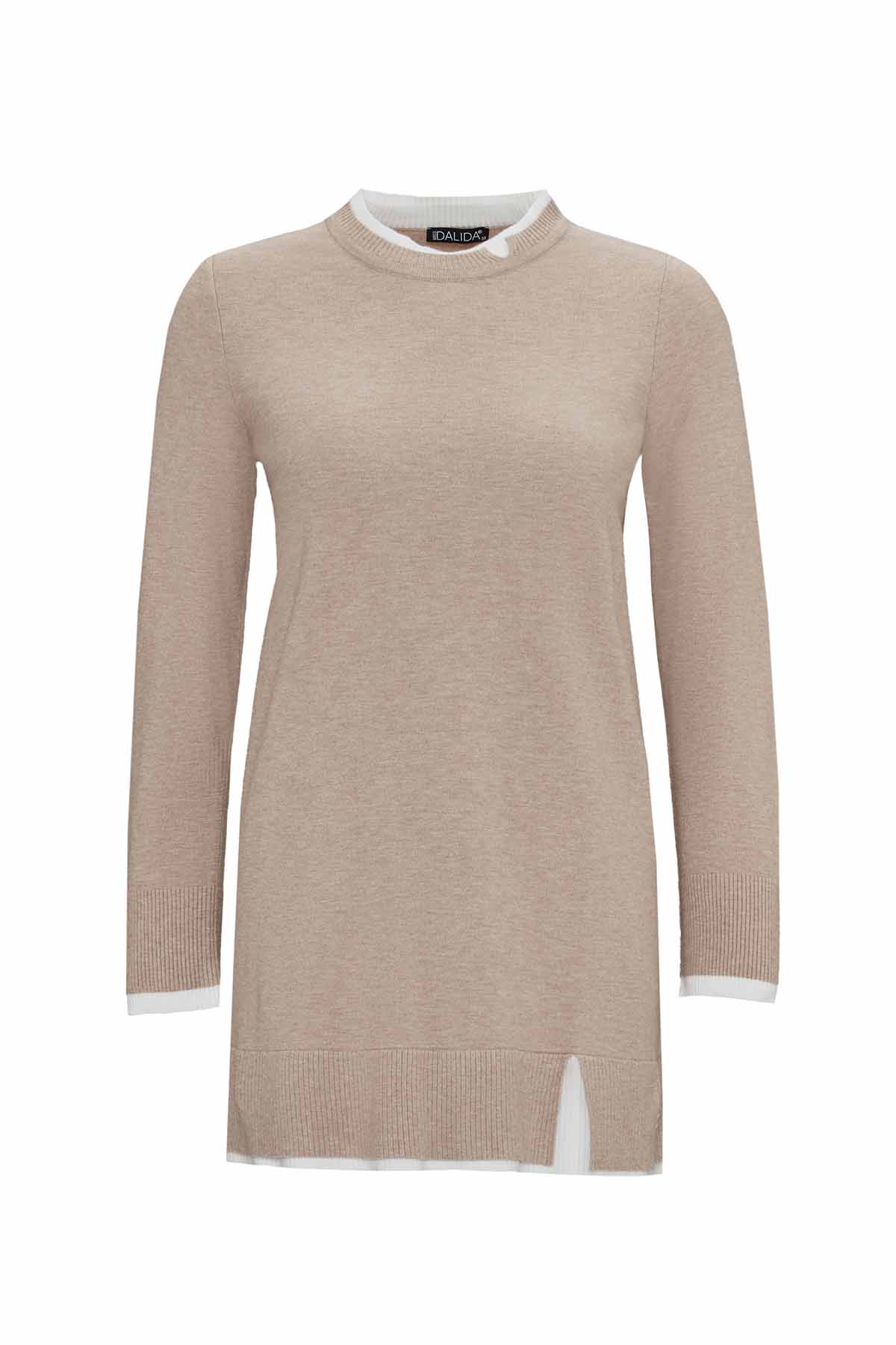 Miss Dalida Yakası Yırtmaçlı Triko Tunik VİZON