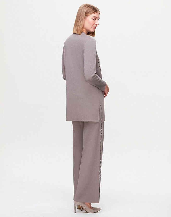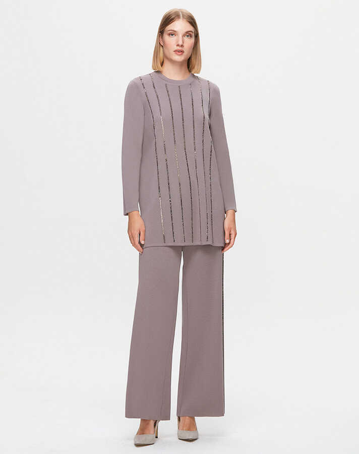 Miss Dalida Yanları Şerit Taşlı Bol Paça Pantolon Scure/Mink