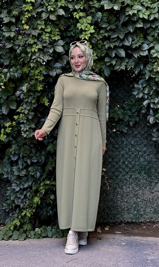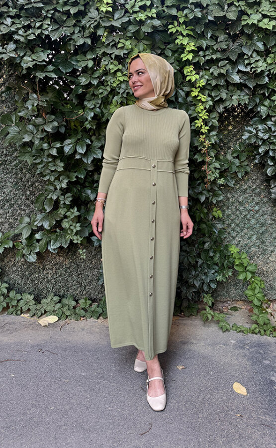 Miss Dalida Yuvarlak Yaka Fitil Detaylı Elbise olive