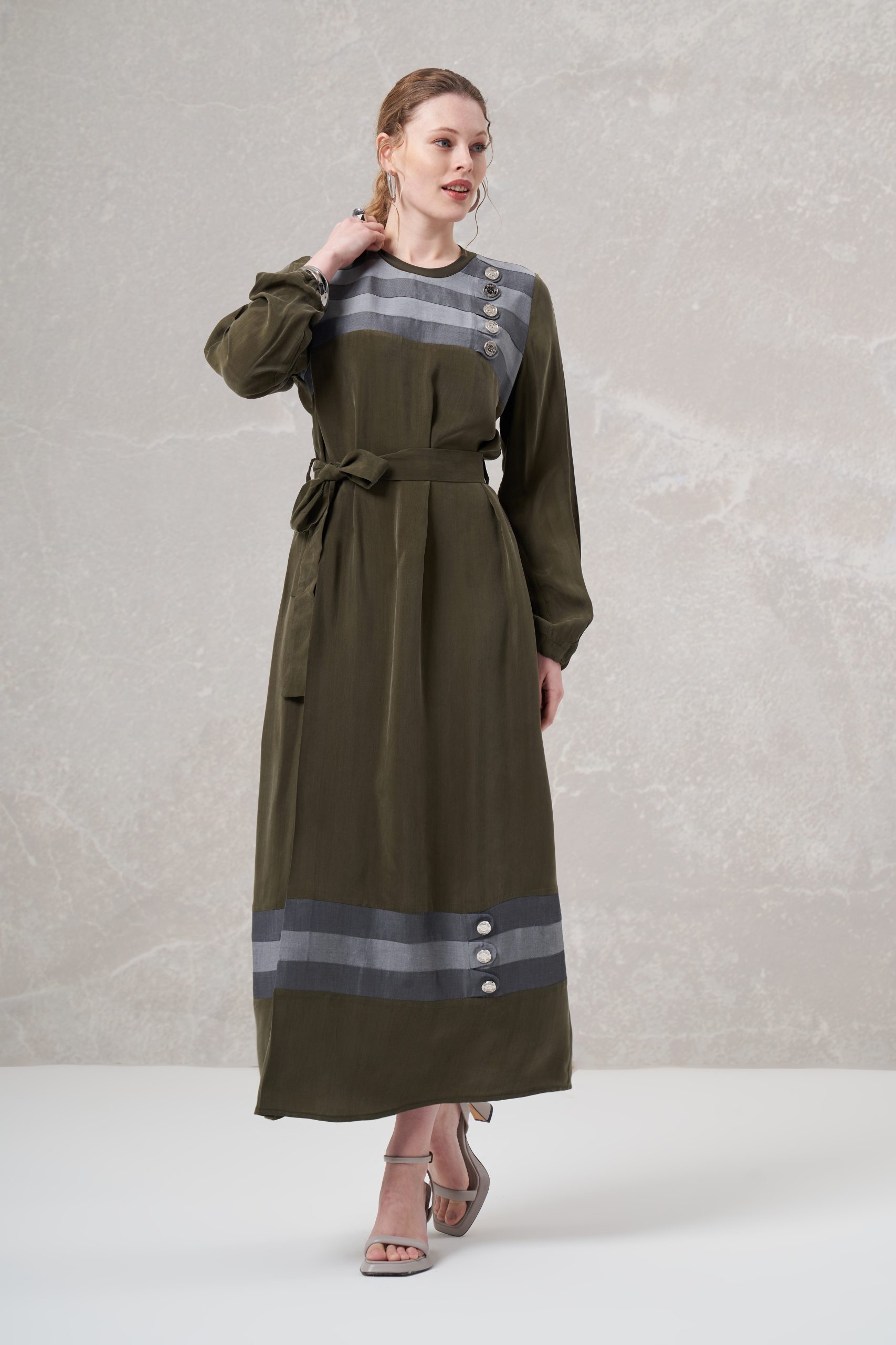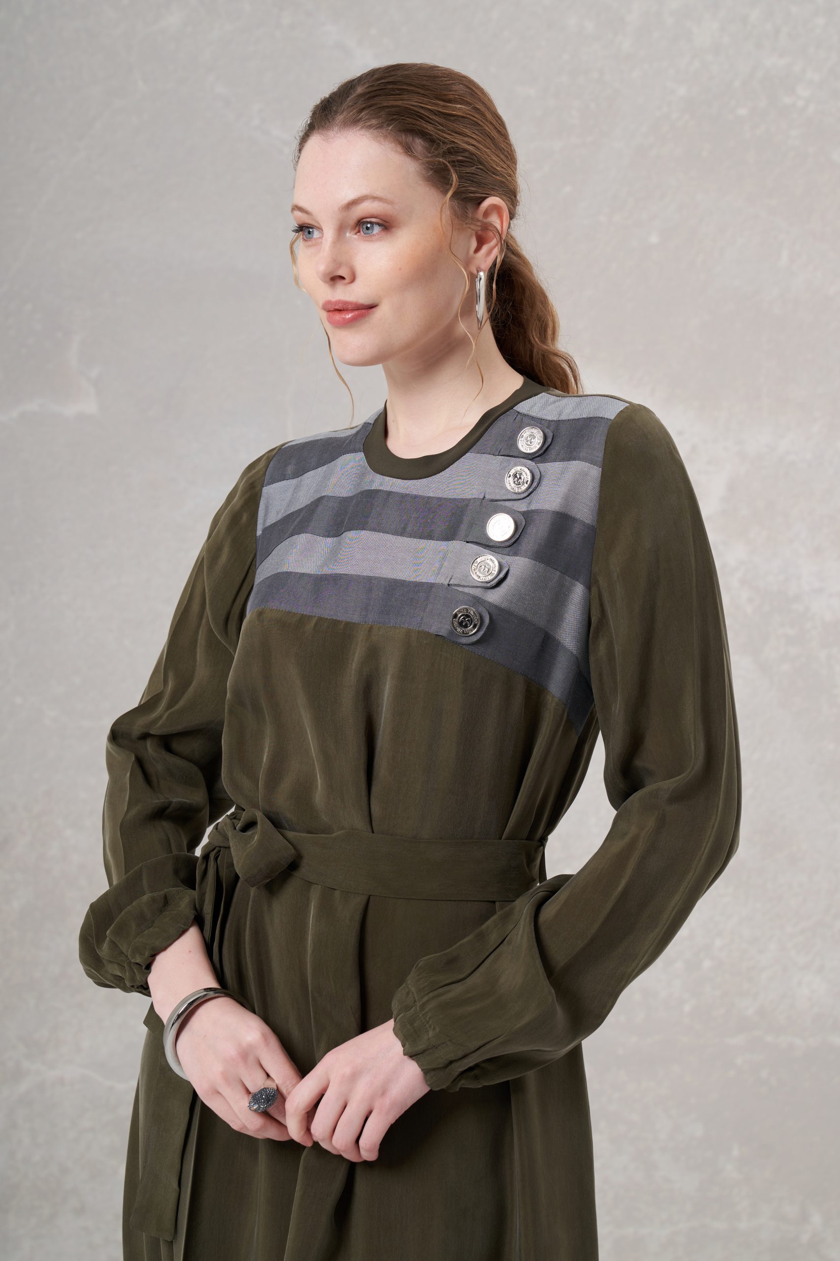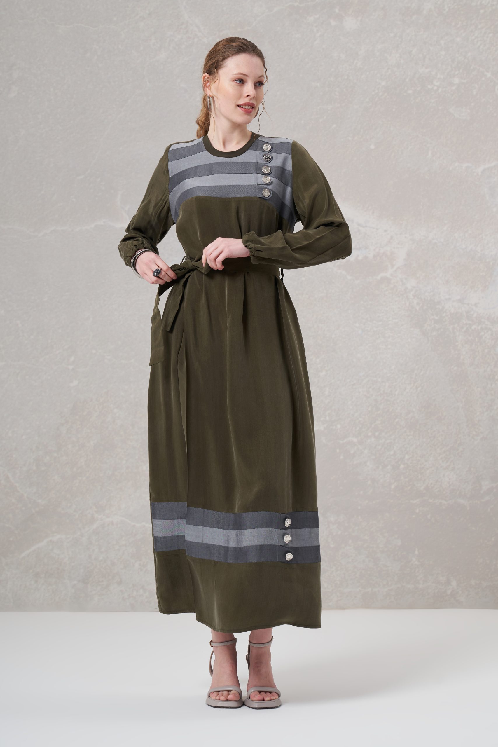 MissWhence Önü Düğme Detaylı İpek Elbise HAKİ