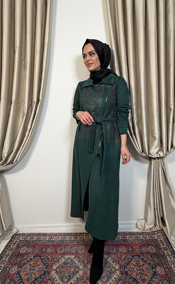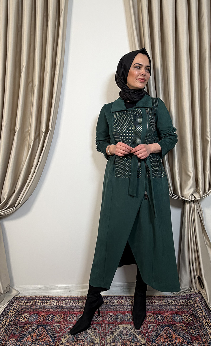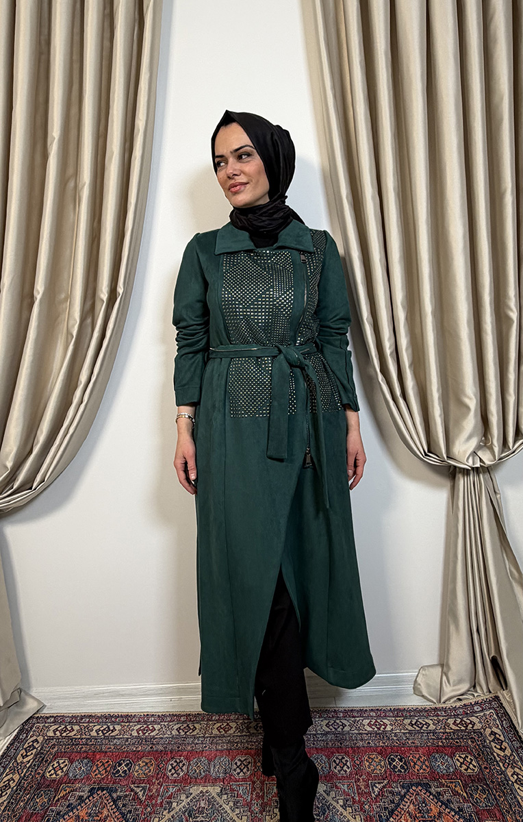MissWhence Önü Zımba Detaylı Nubuk Pardesü ZÜMRÜT