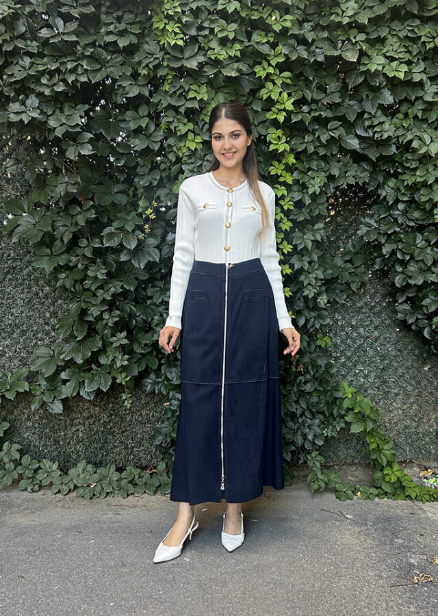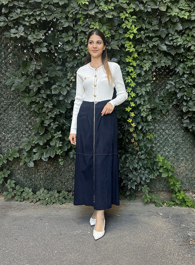 MissWhence Yandan Fermuarlı Pliseli Etek LACİVERT