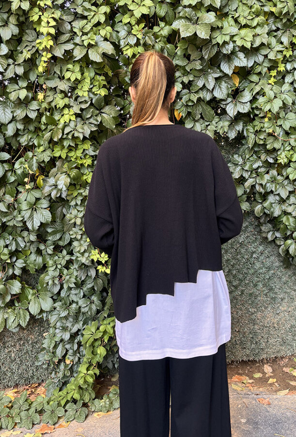 MissDalida Asimetrik Kesim Triko Tunikli Gömlek Black/Ecru