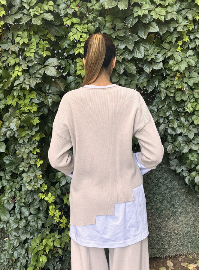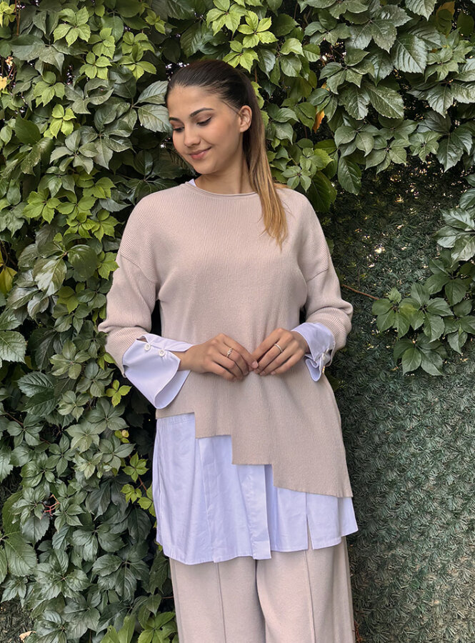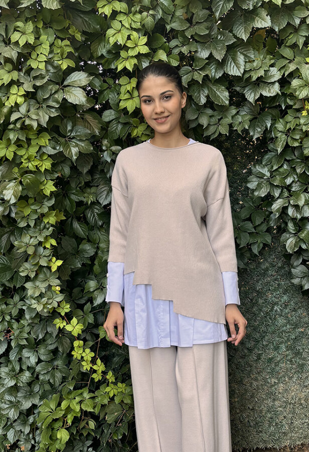 MissDalida Asimetrik Kesim Triko Tunikli Gömlek Stone