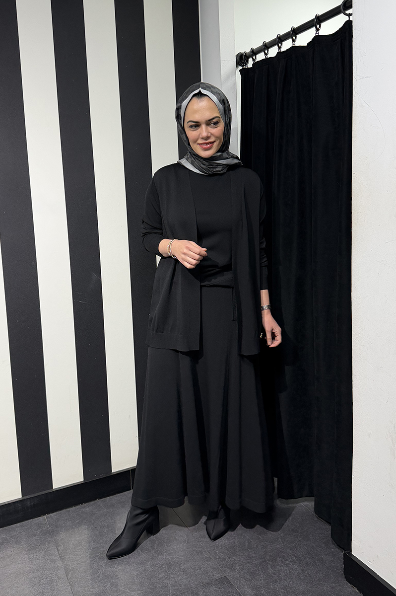 Miss Dalida Arkası Örgü Motifli Hırkalı Takım BLACK