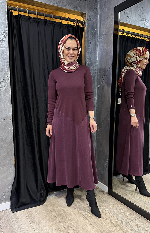 MissDalida Eteği Cupra Triko Elbise TOGA-BORDO