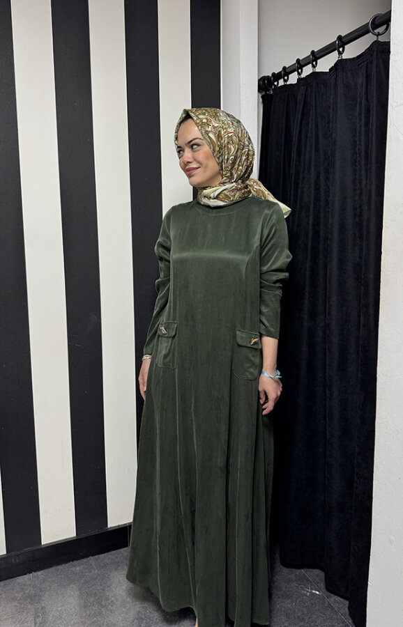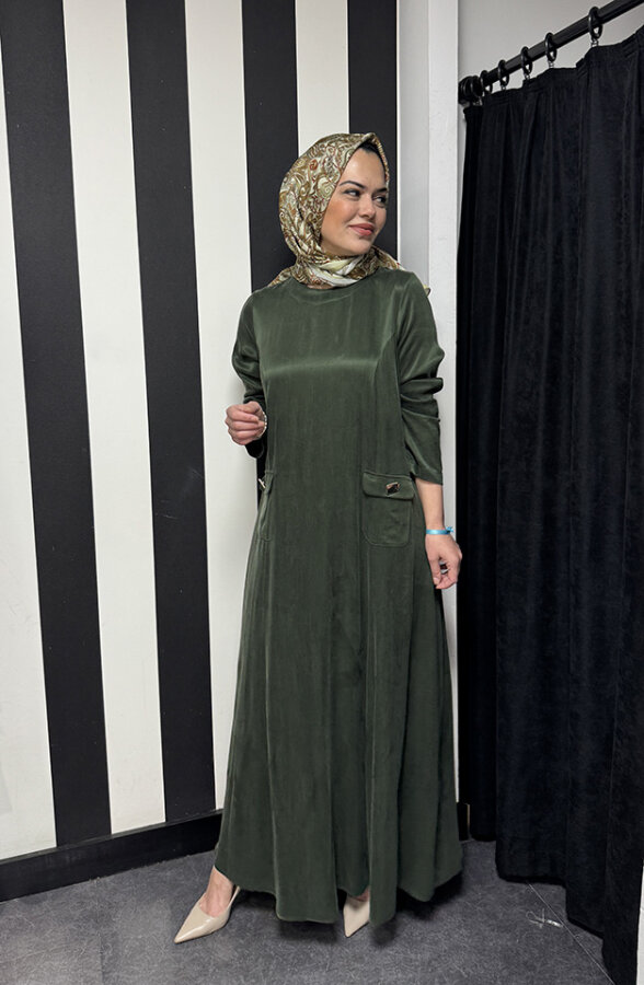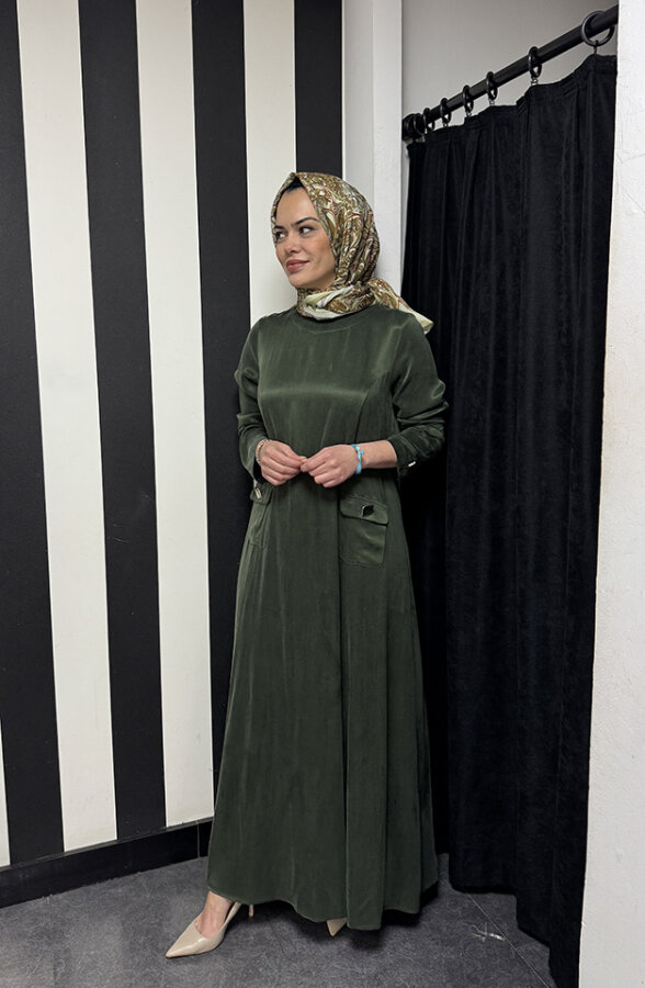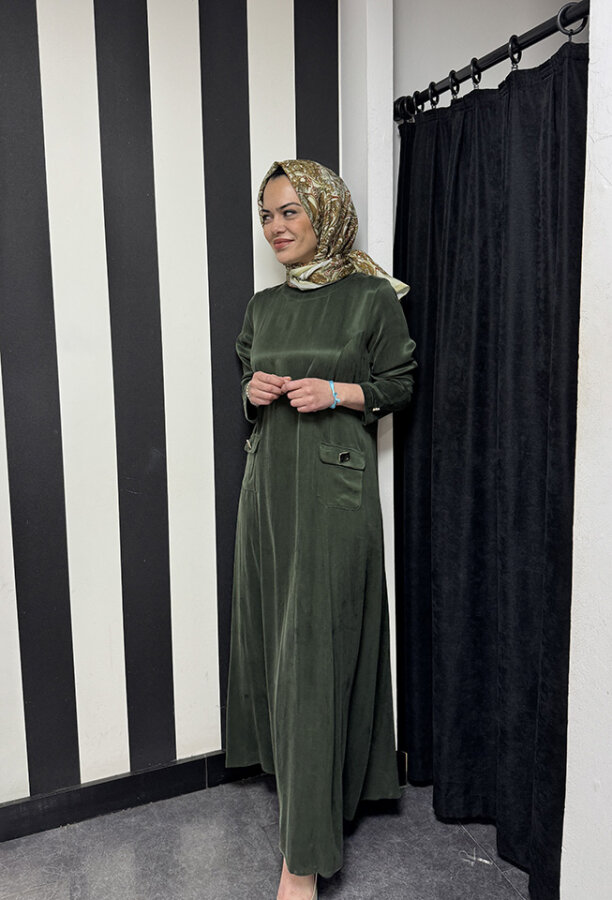 MissDalida Önü Cepli Cupra Elbise HAKİ