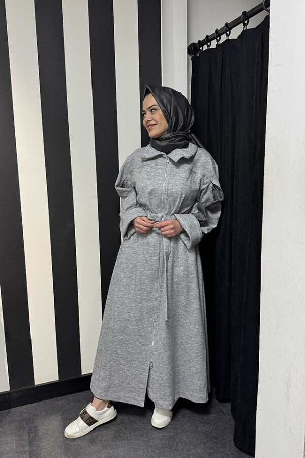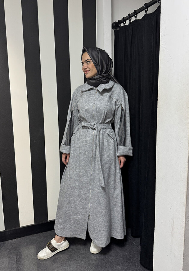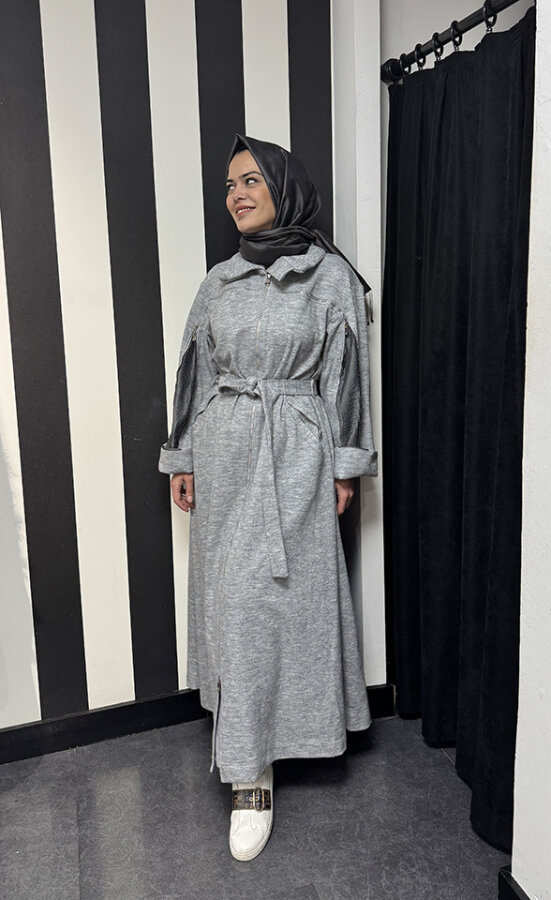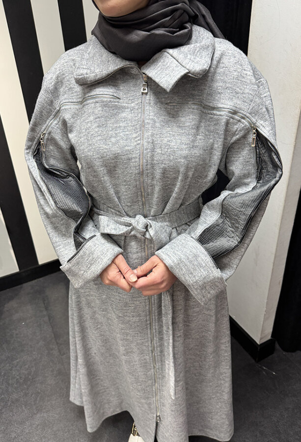 MissWhence Belden Kuşaklı Fermualı Pardesü GRİ