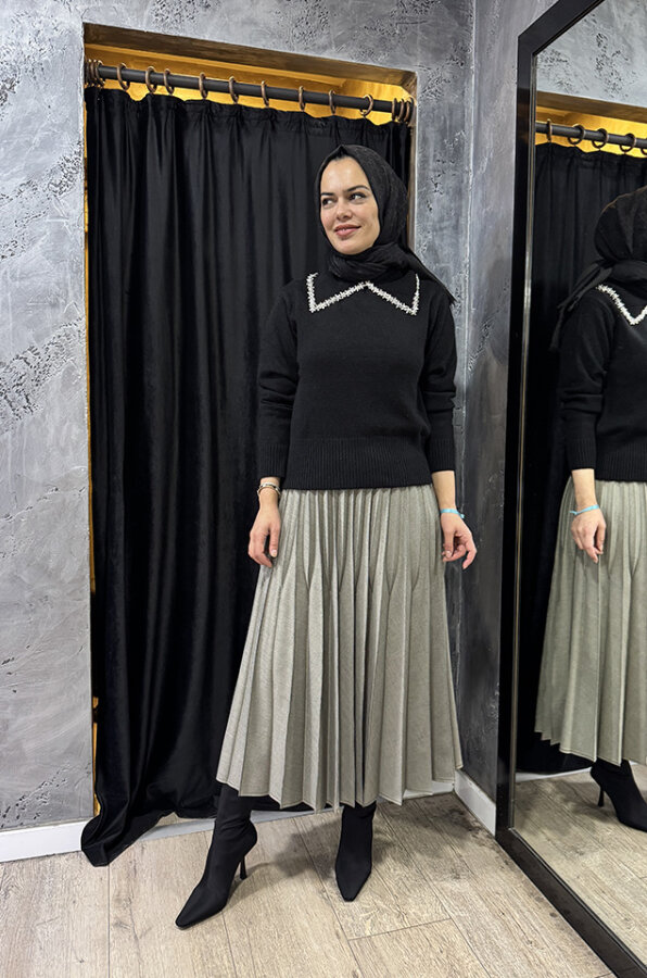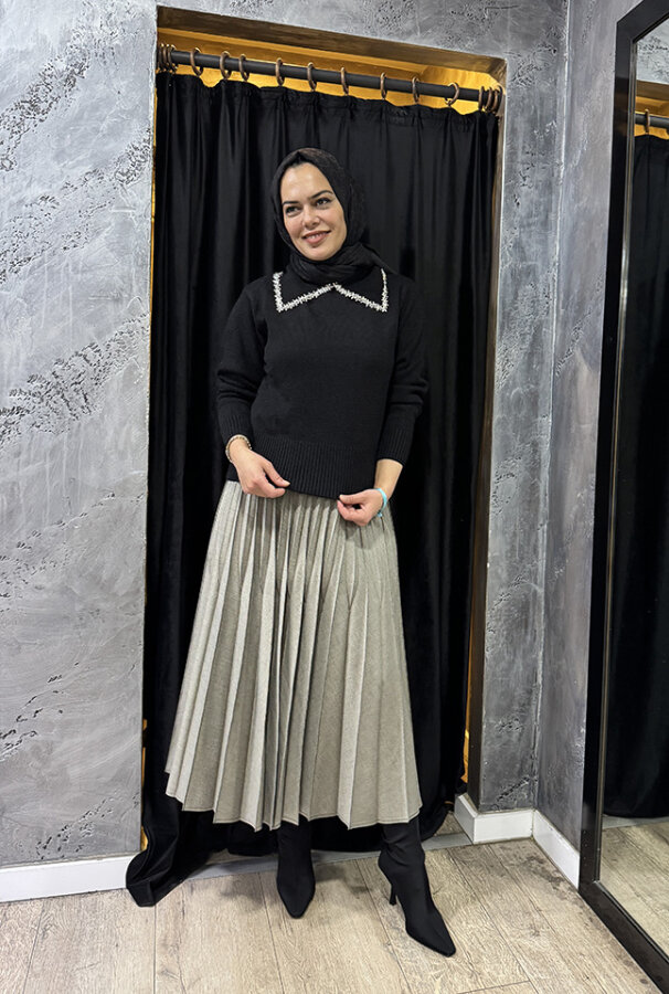 Zeynep Zümra Büzgü Detatlı Pliseli Etek MÜRDÜM