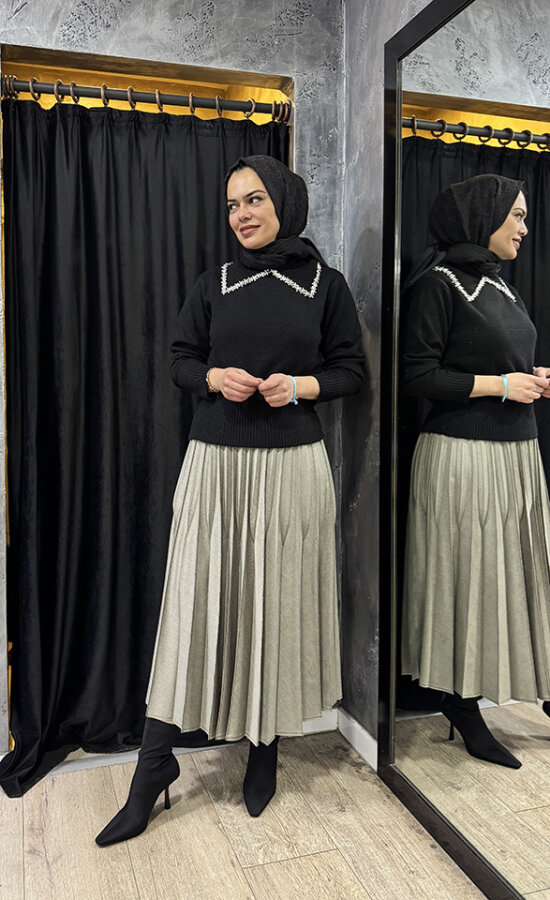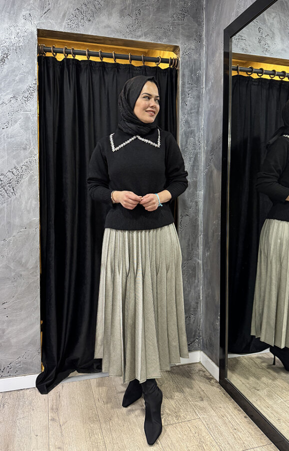 Zeynep Zümra Büzgü Detatlı Pliseli Etek ZÜMRÜT
