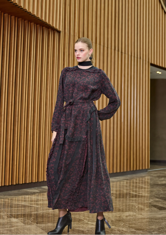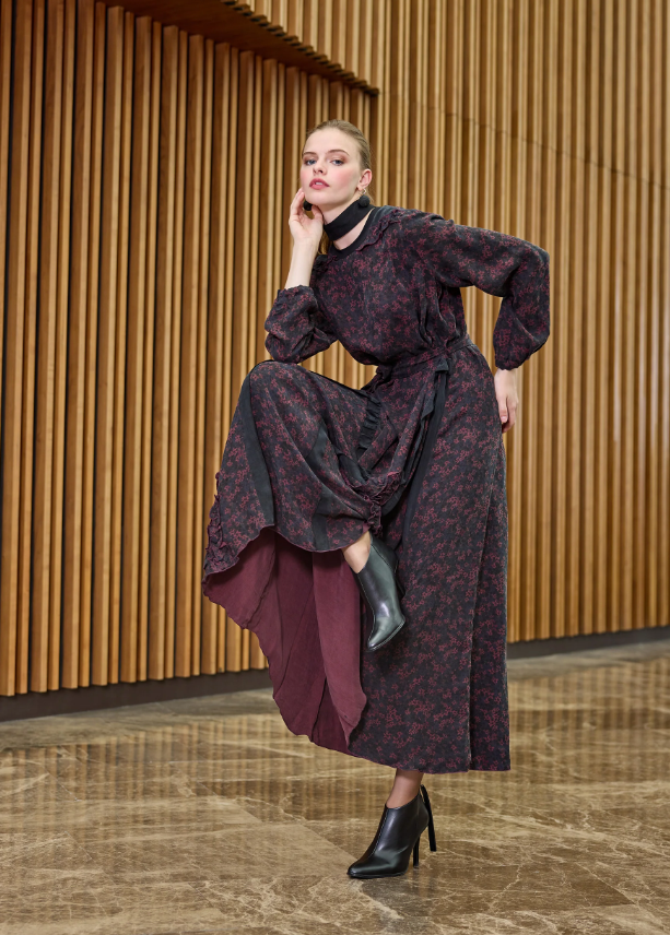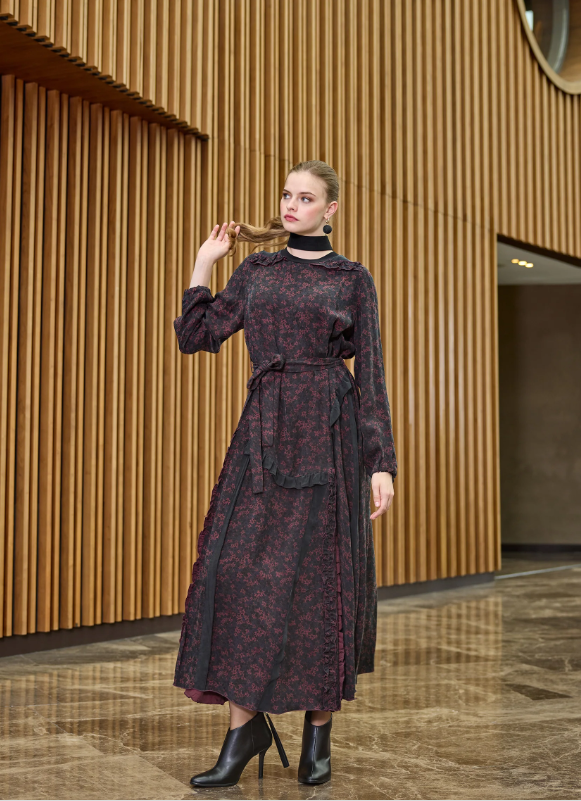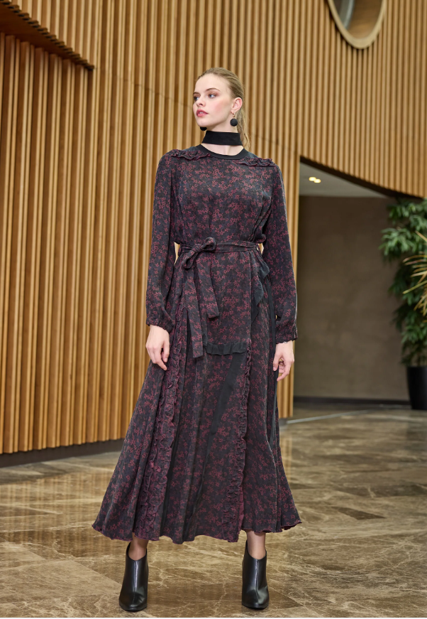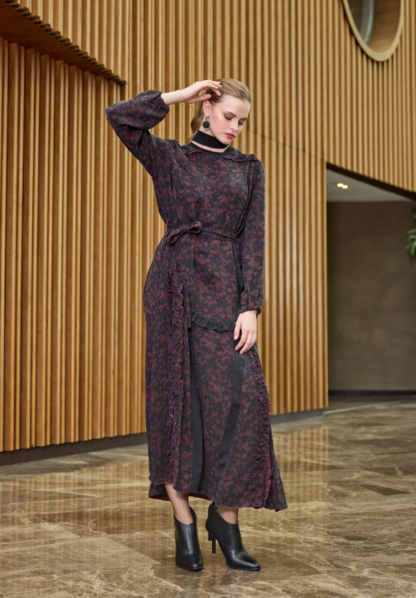 MissWhence Çiçek Desenli Elbise BORDO
