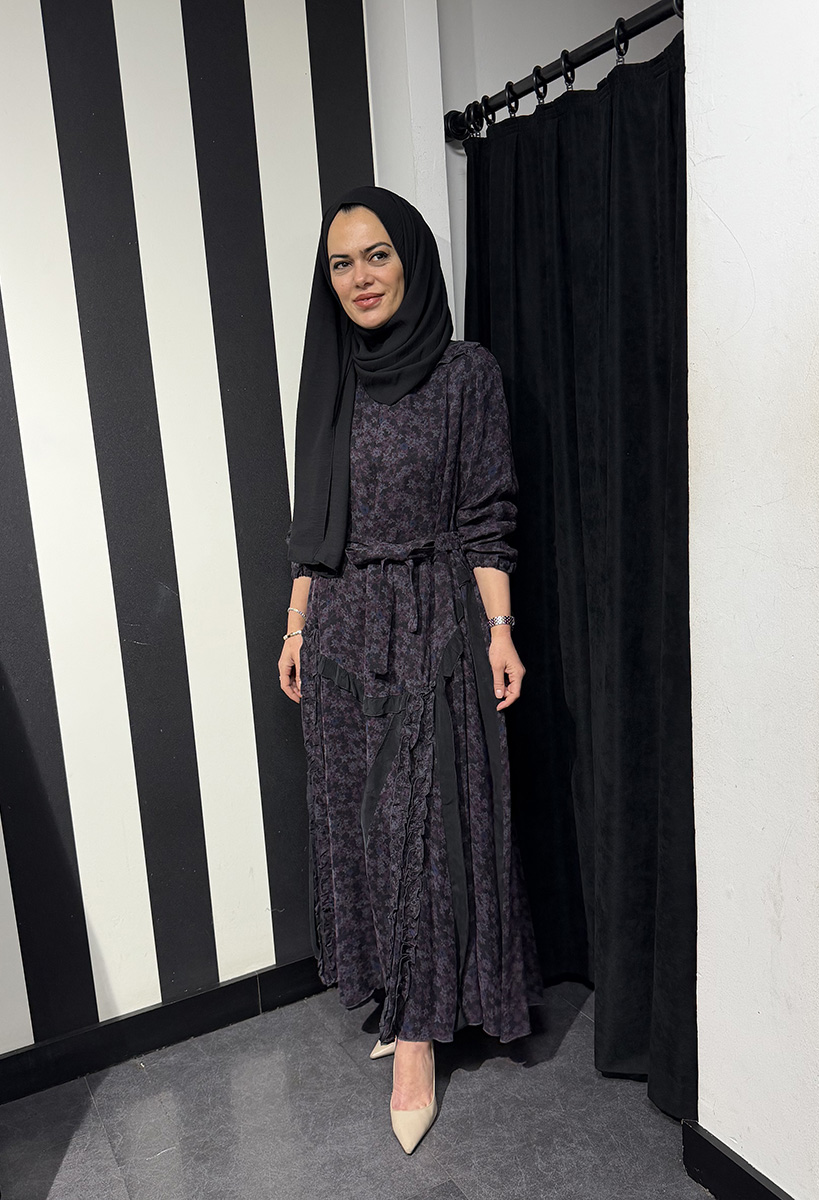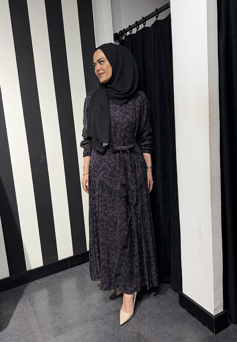 Yeşim Özcan Kolları Taş Detaylı Kat Kat Elbise GRİ