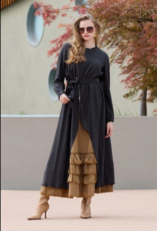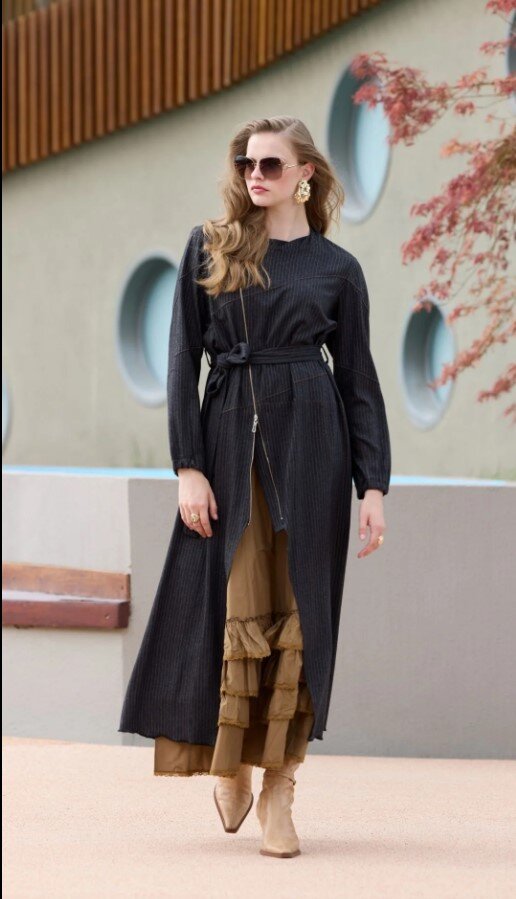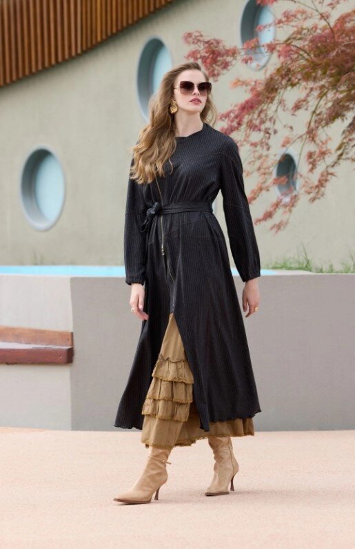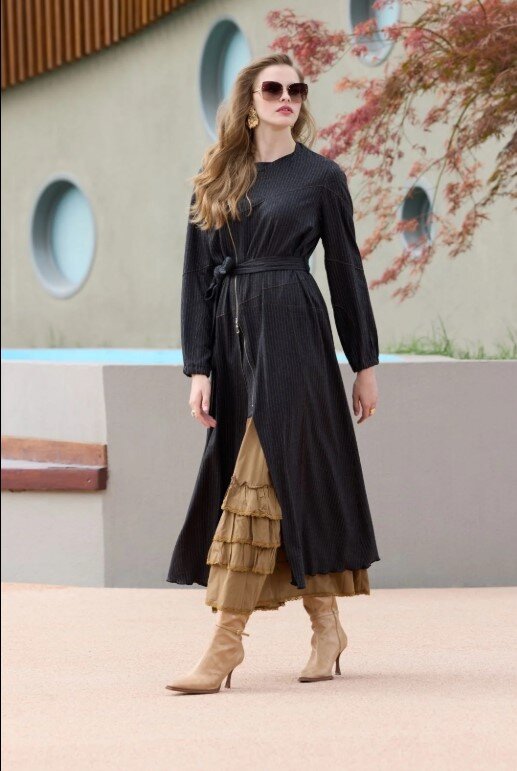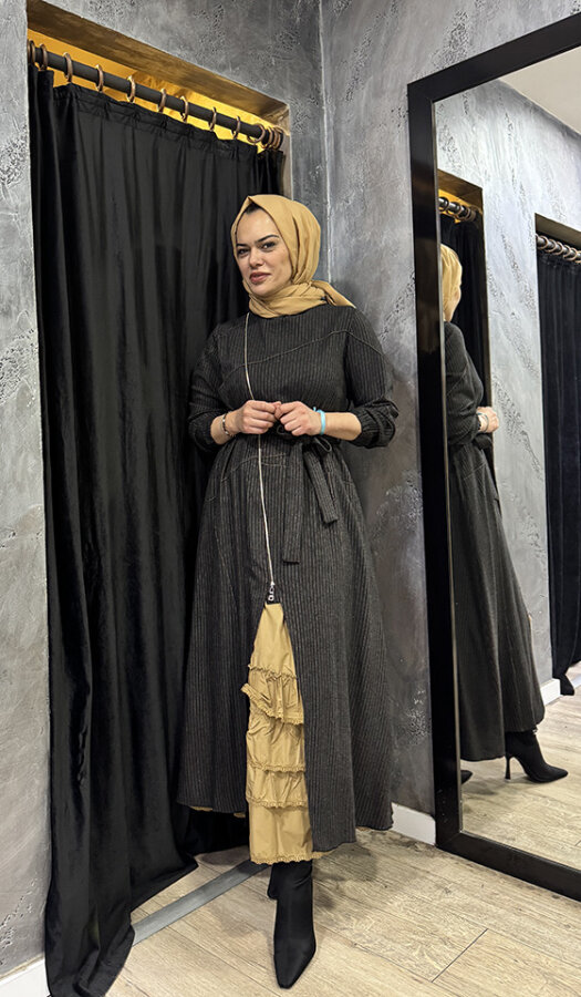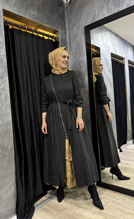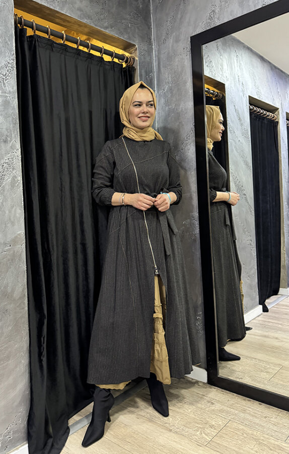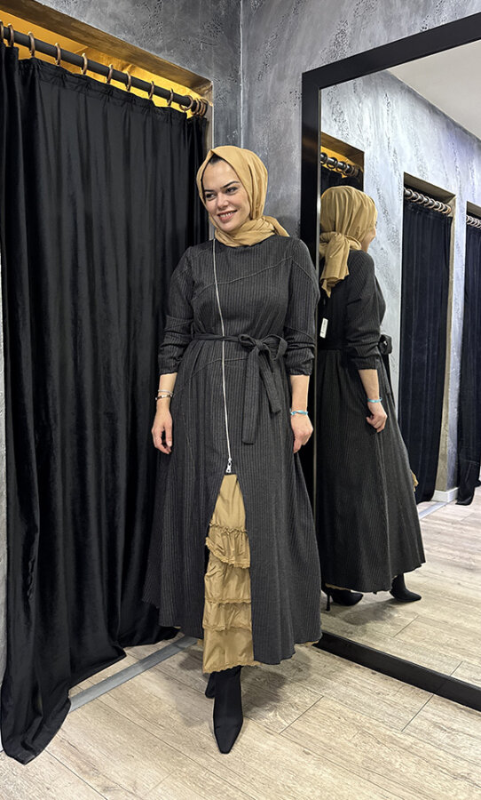 MissWhence Çizgili Önü Fermuarlı İkili Elbise ORJİNAL