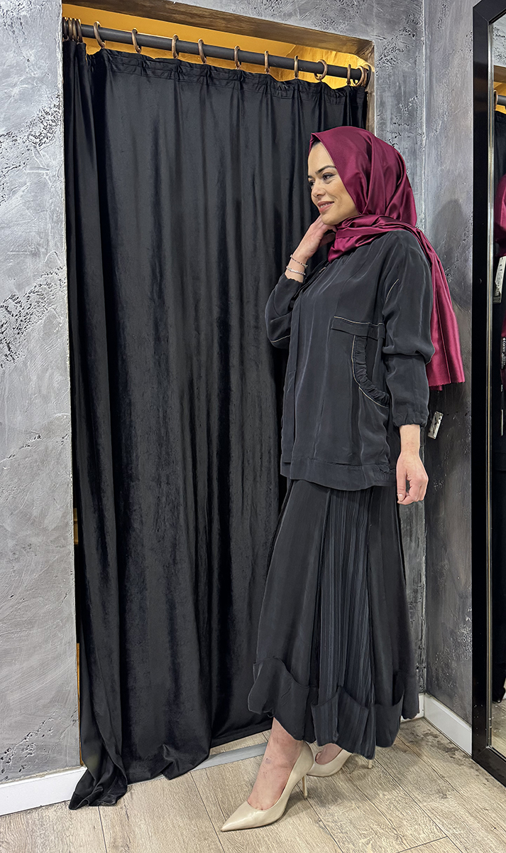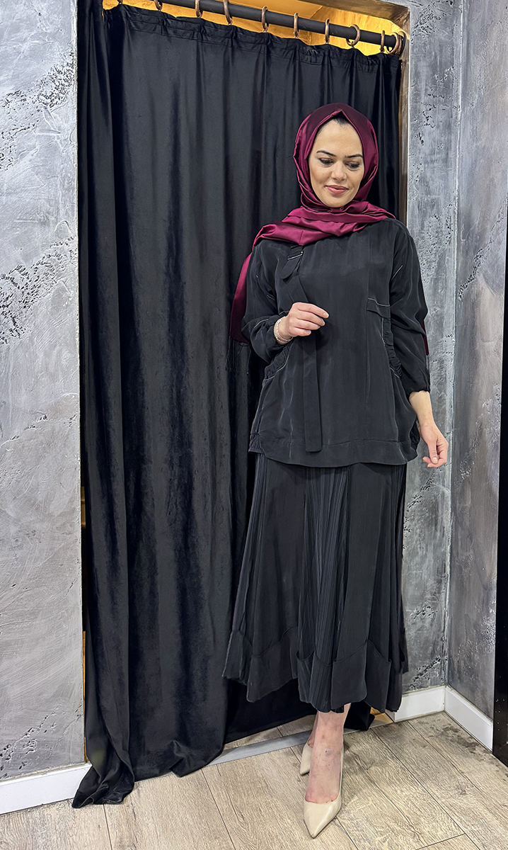 MissWhence Etek Ucu Pliseli Etek SİYAH