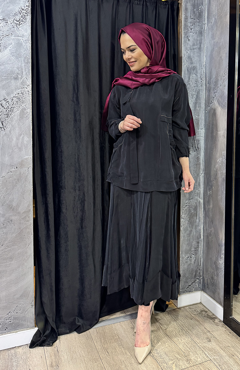Zeynep Zümra Büzgü Detatlı Pliseli Etek MÜRDÜM