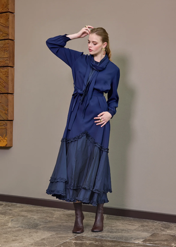 MissWhence Etek Ucu Tafta Elbise LACİVERT
