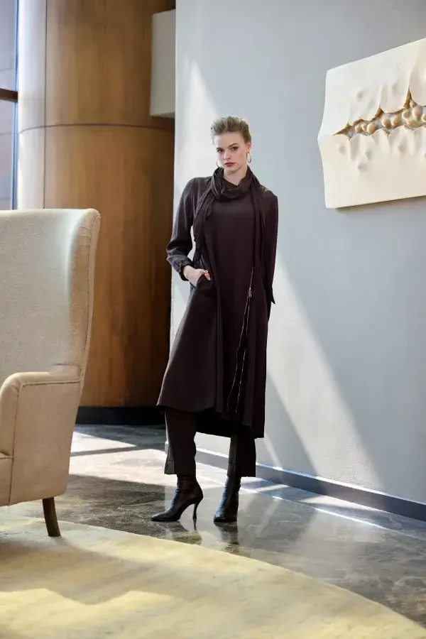 MissWhence Fermuar Detaylı Pantolon Takım KAHVE