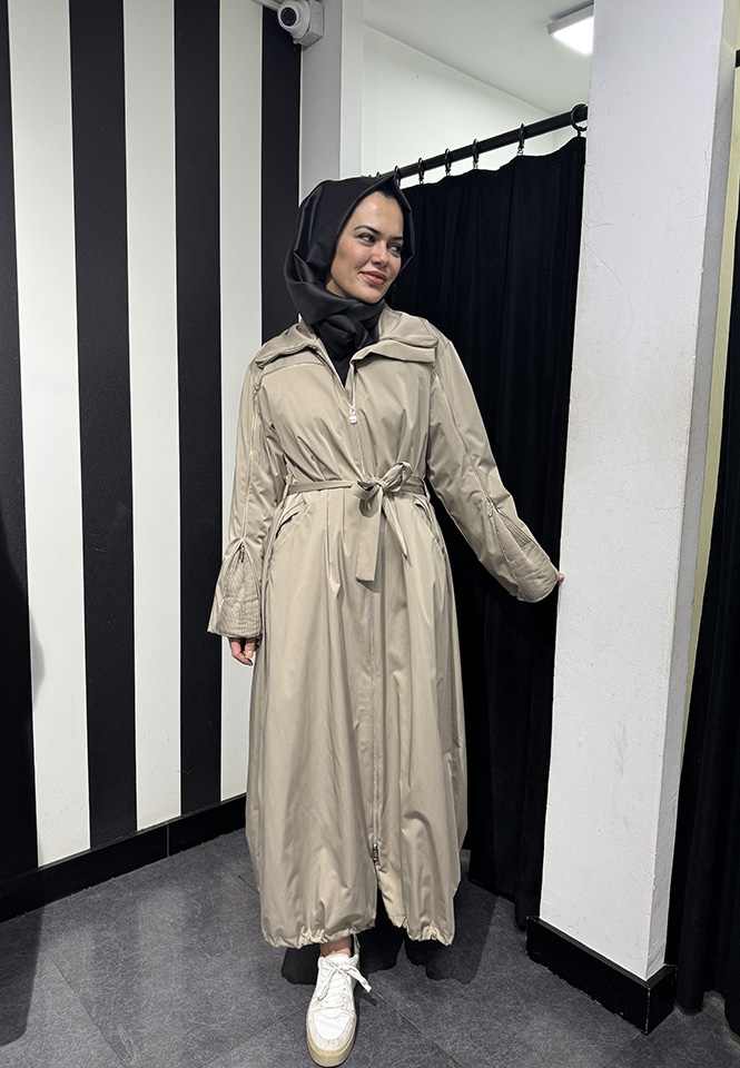 MissWhence Önü Fermuarlı Paraşüt Pardesü VİZON