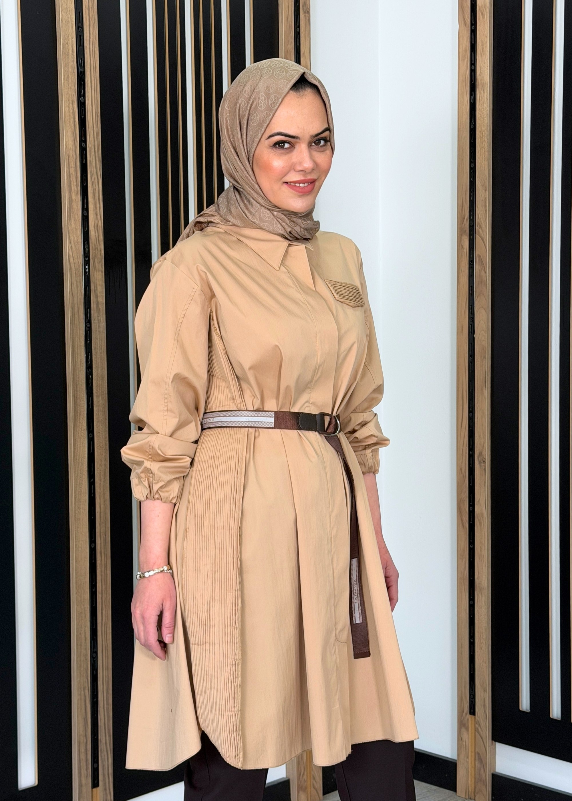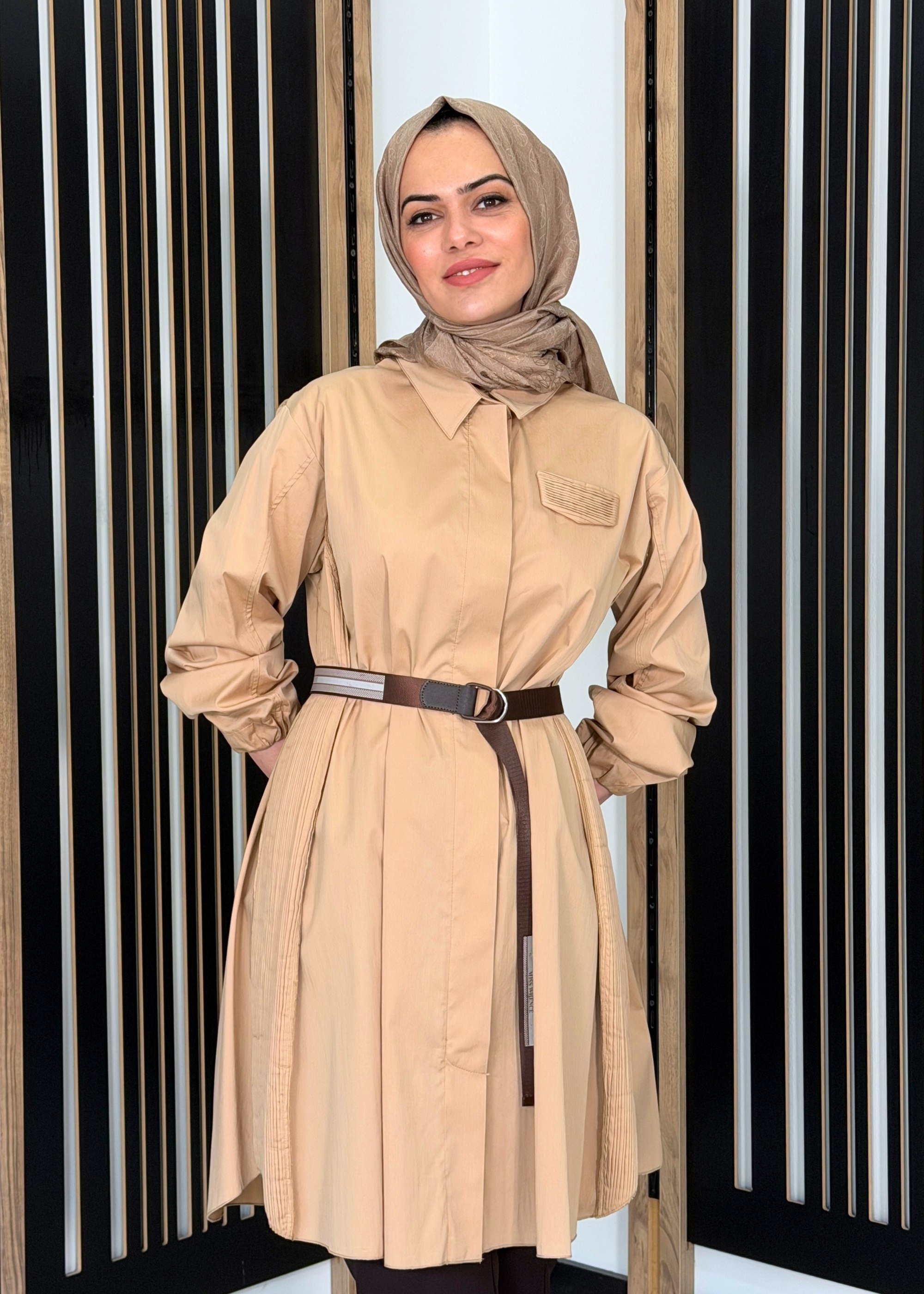 MissWhence dokunuşuyla tasarlanan bu kemerli tunik, modern kesimi ve zarif detaylarıyla tesettür giyimde şıklığı ön plana çıkarır. Bel kısmındaki kemer detayı sayesinde vücuda form kazandırırken, rahat kalıbı ile gün boyu konfor sunar. Günlük kullanımdan özel kombinlere kadar geniş bir kullanım alanına sahiptir.