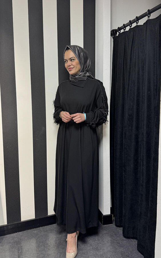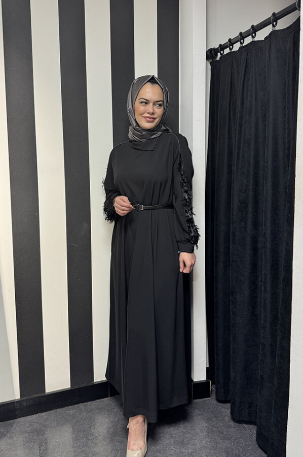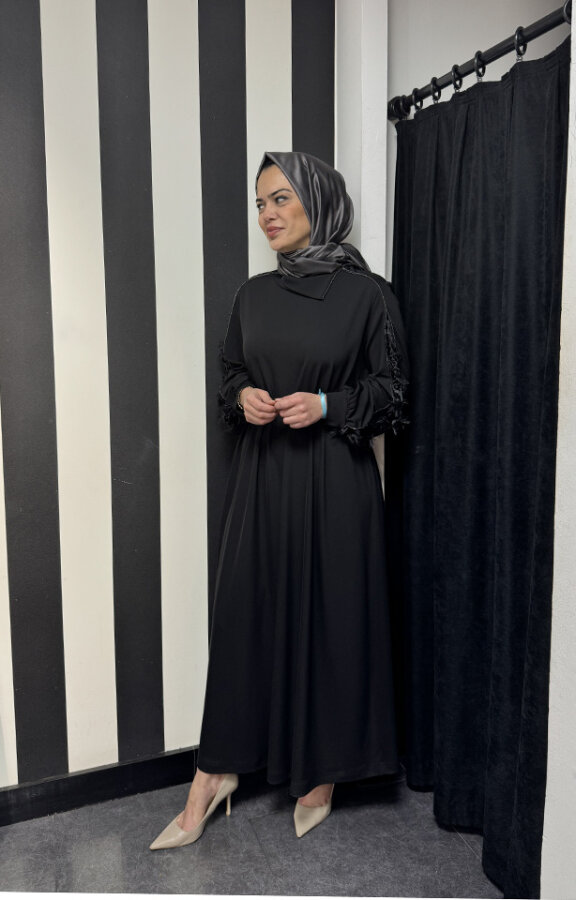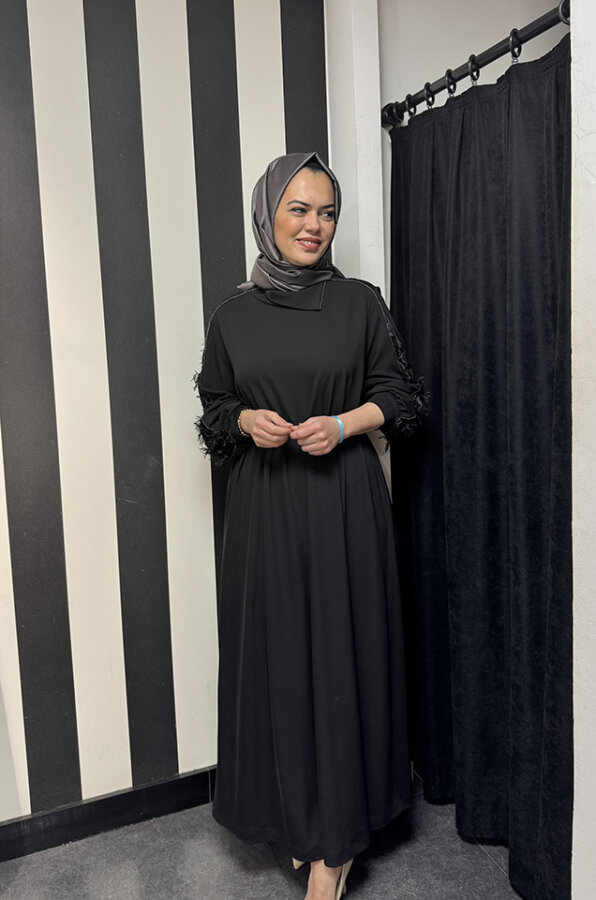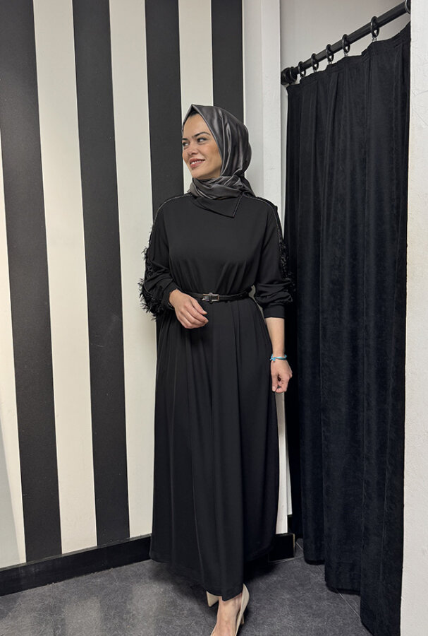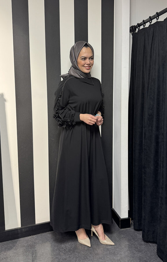 MissWhence Kollaı Kumaş Detaylı Elbise SİYAH
