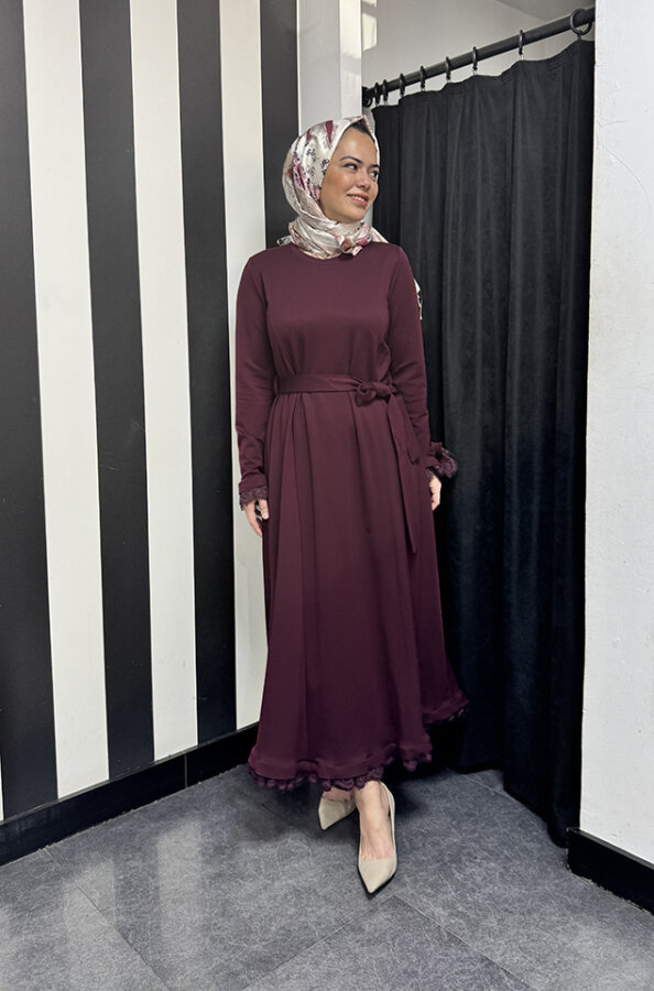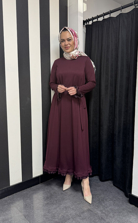 MissWhence Kolları Ve Etek Ucu Dantelli Elbise BORDO