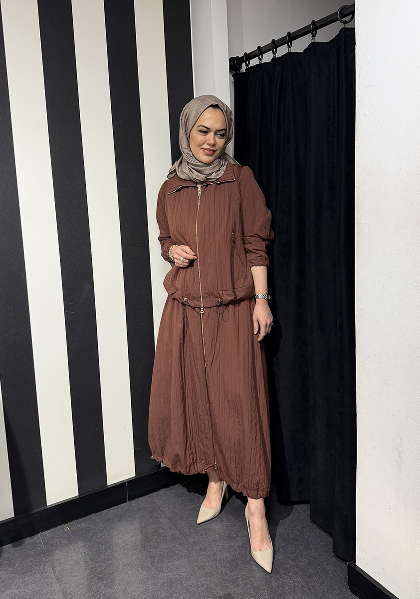 MissWhence Kendinden Desenli Şalvarlı Takım KAHVE