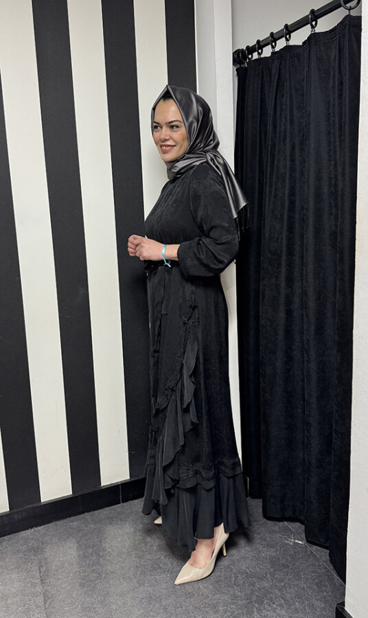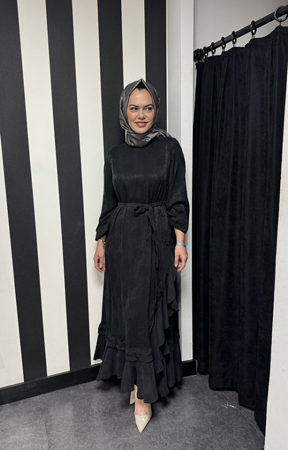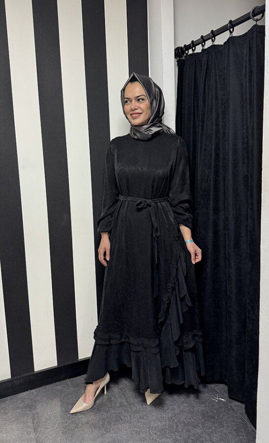 MissWhence Yandan FırFırlı Detaylı Elbise SİYAH