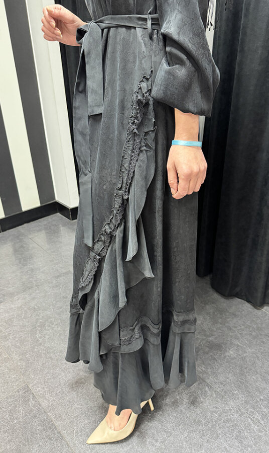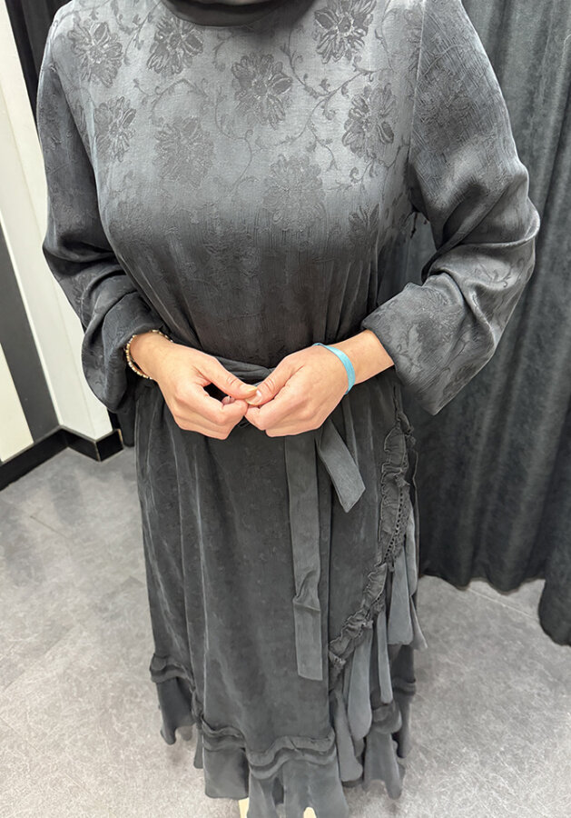 MissWhence Yandan FırFırlı Detaylı Elbise GRİ
