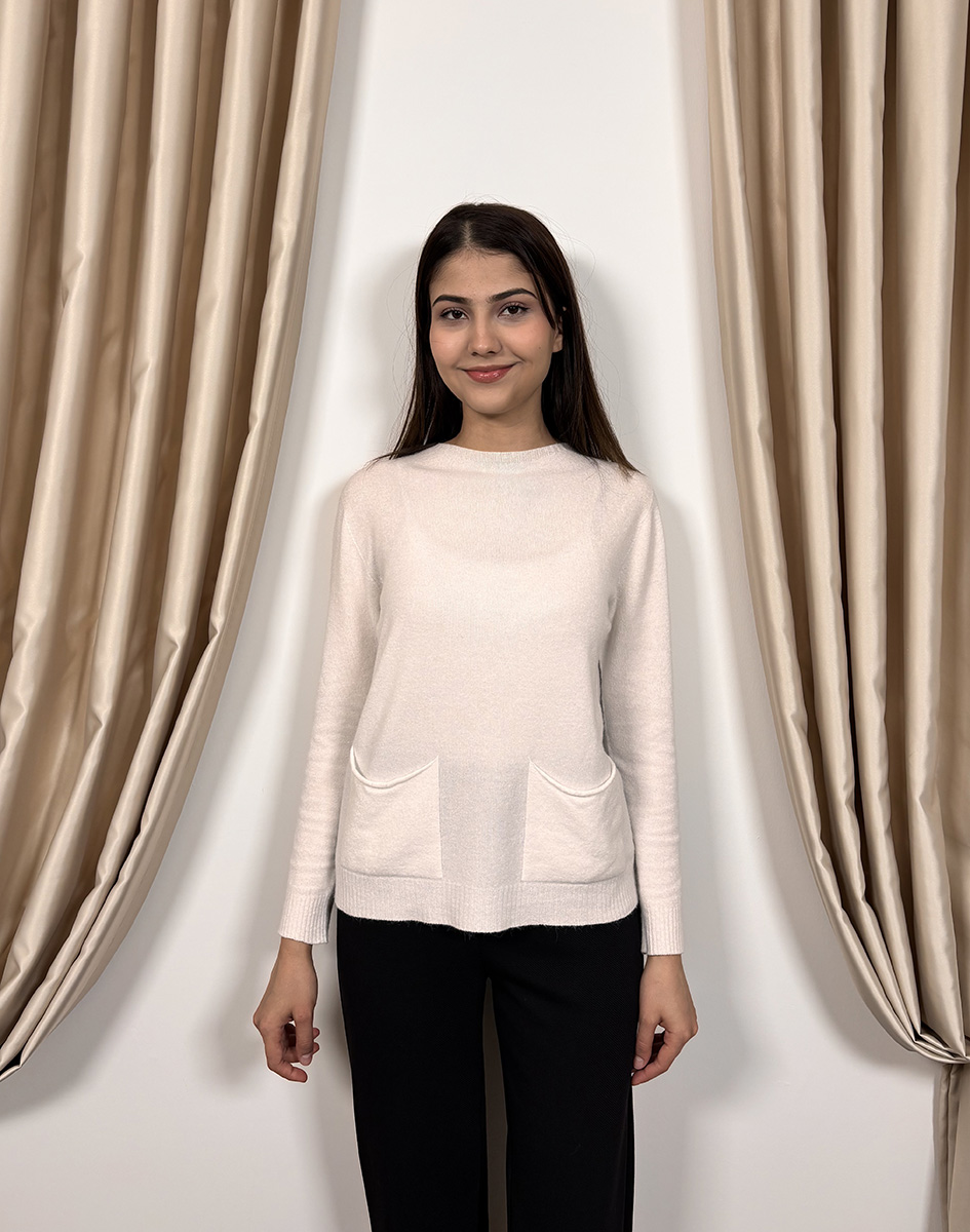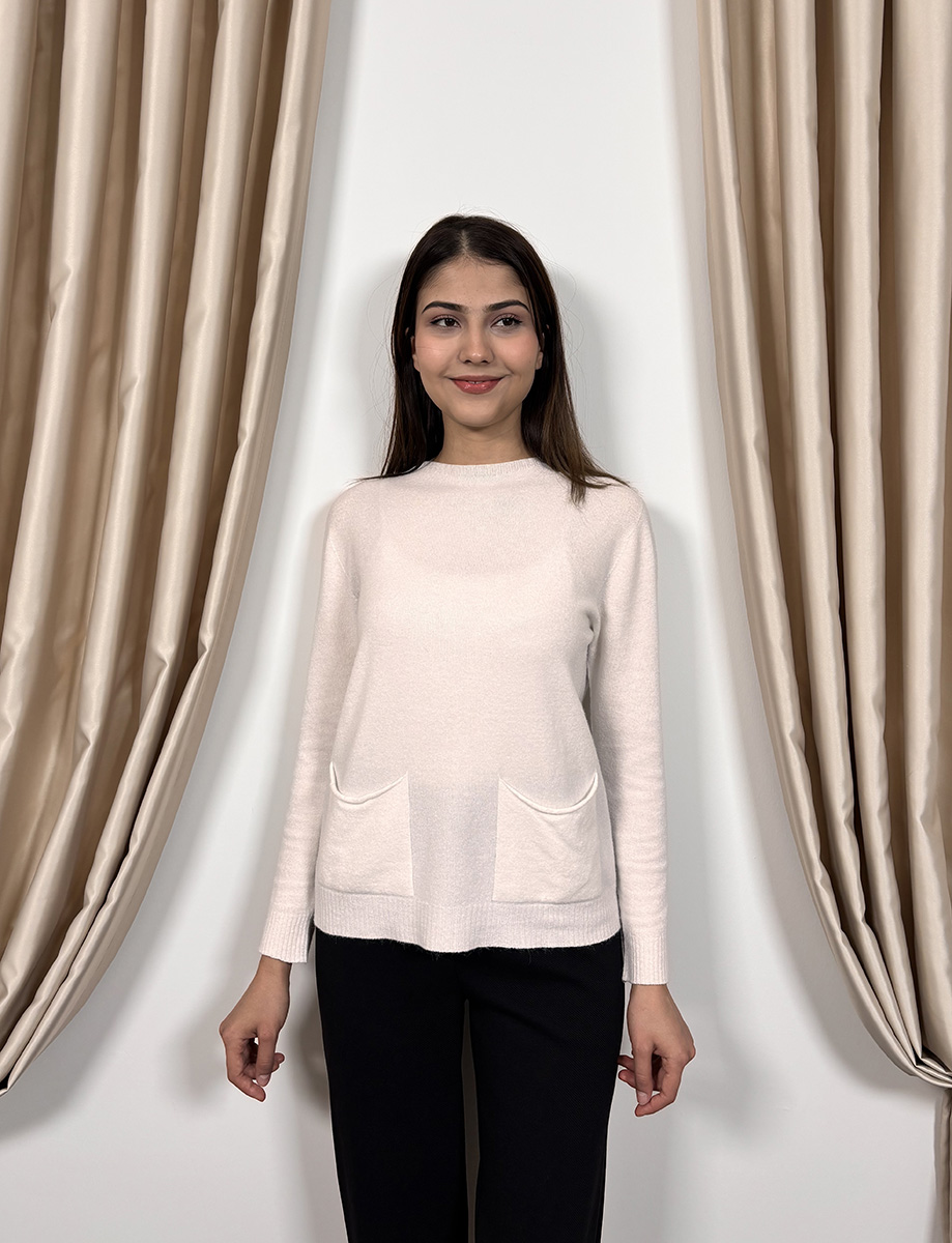 NiQozza Yasemin İthal Cepli Triko Kazak EKRU