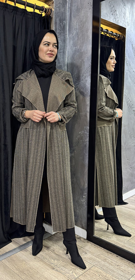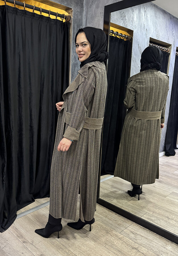 Noi Balıksırtı Polviscon Arkası Kemerli Ceket VİZON