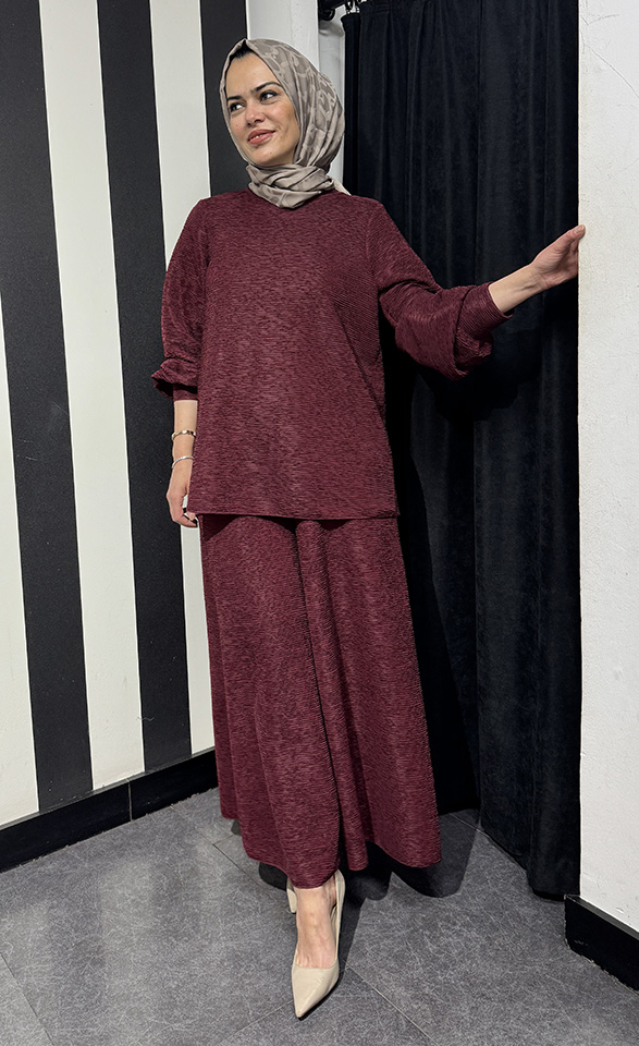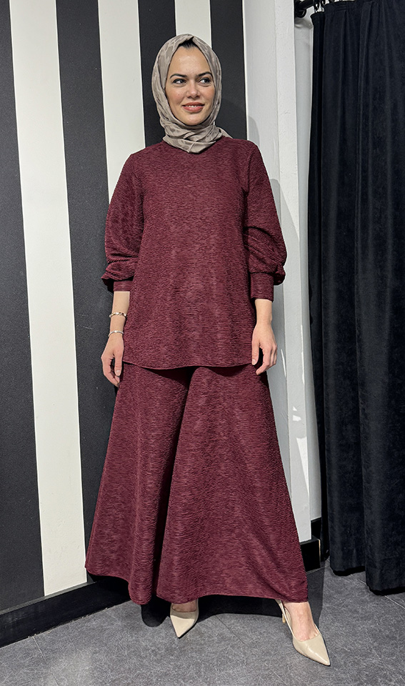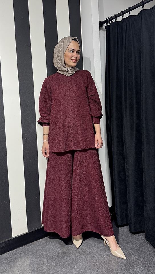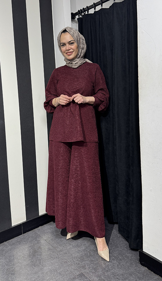 Noi Brümcüklü Krep Geniş Paça Pantolonetek BORDO