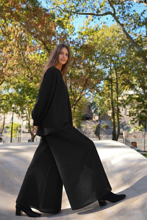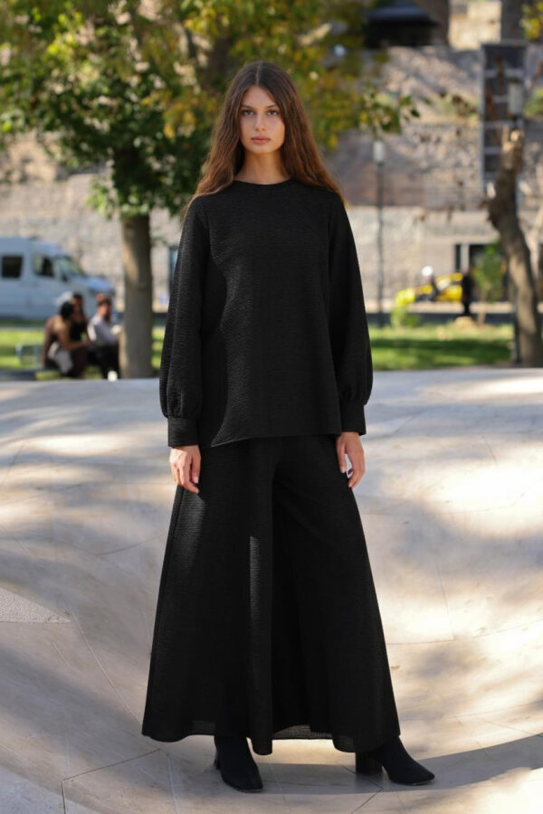 Noi Brümcüklü Krep Geniş Paça Pantolonetek SİYAH