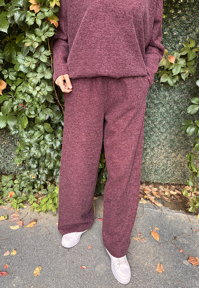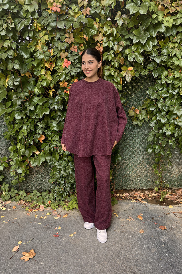 Noi Fitilli Melanj Triko Bol Paça Pantolon BORDO