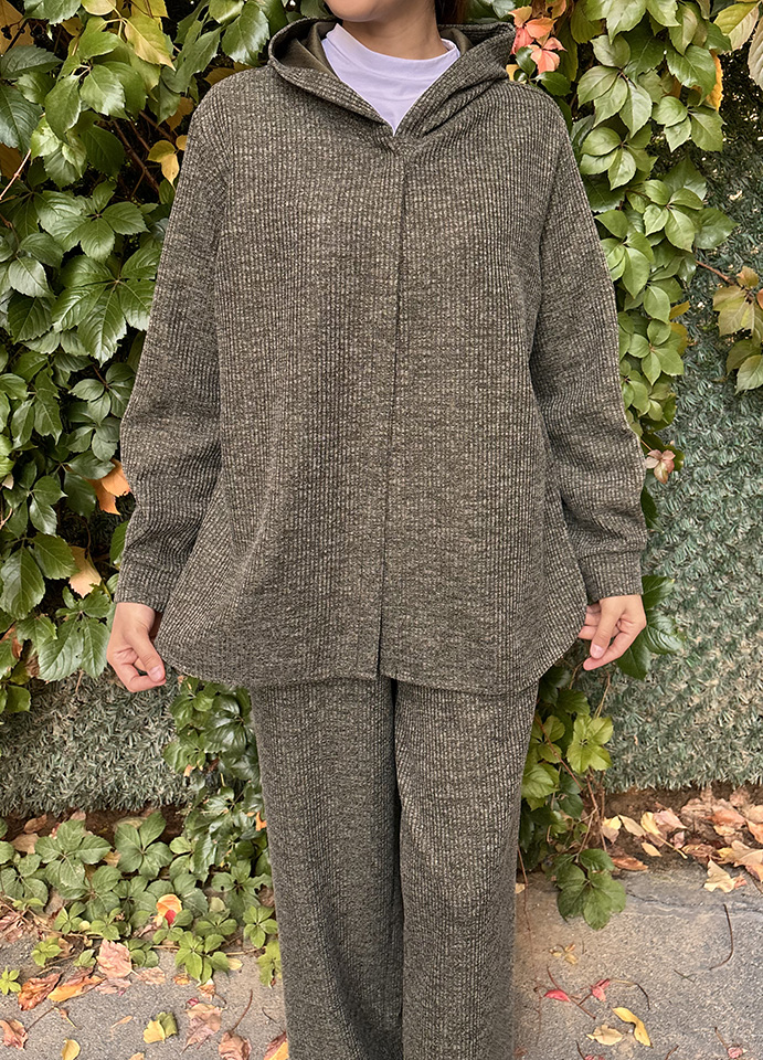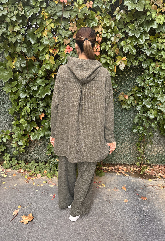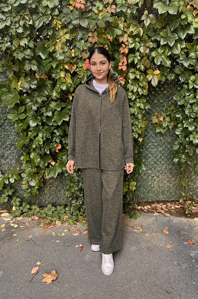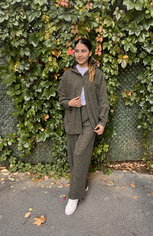 Noi Fitilli Melanj Triko Bol Paça Pantolon HAKİ