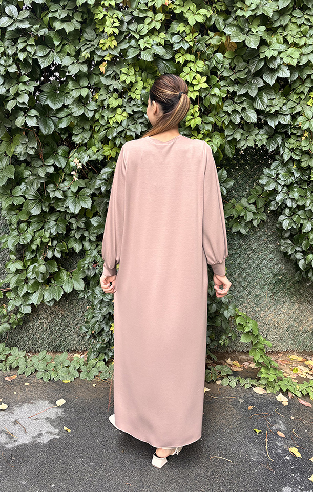 Vuu Önü Nervürlü Yarasa Kol Elbise Acı Kahve