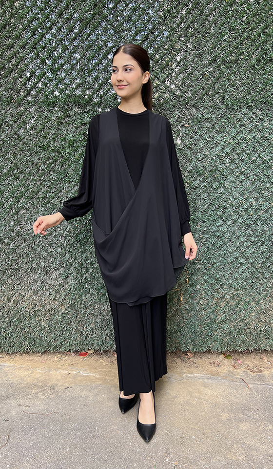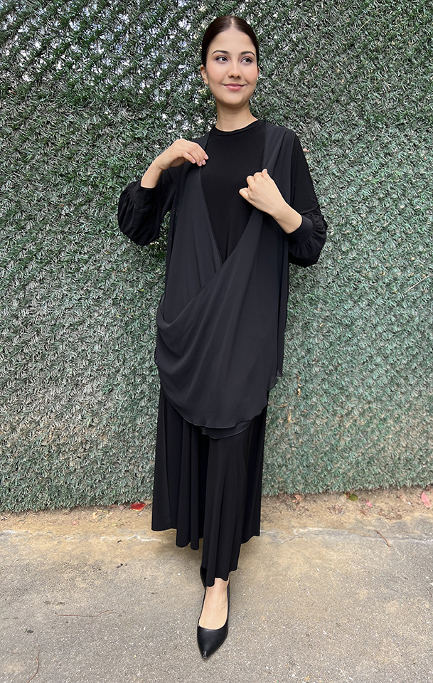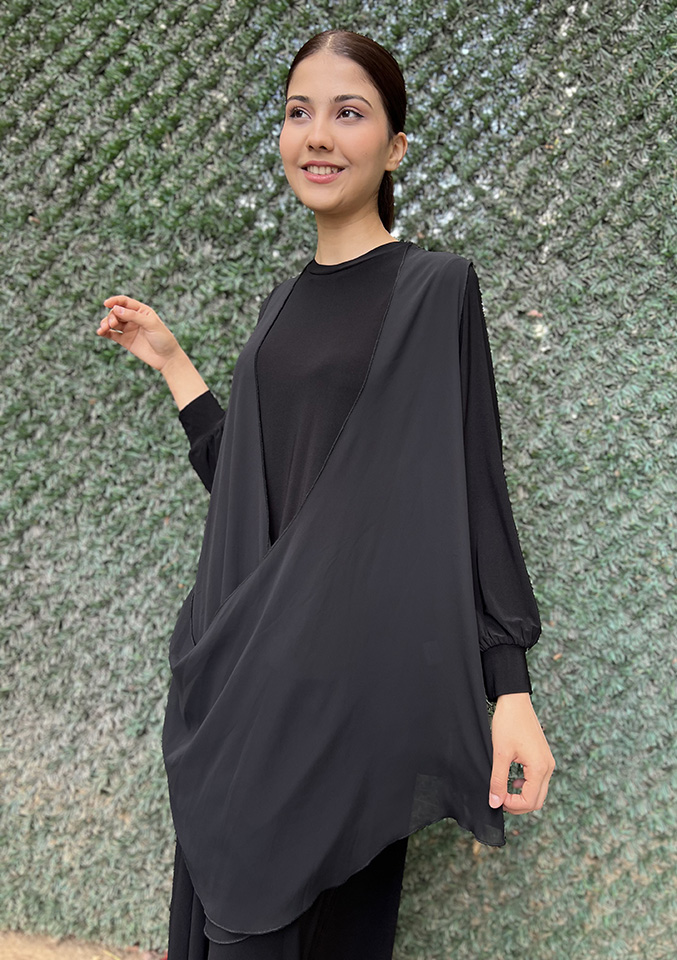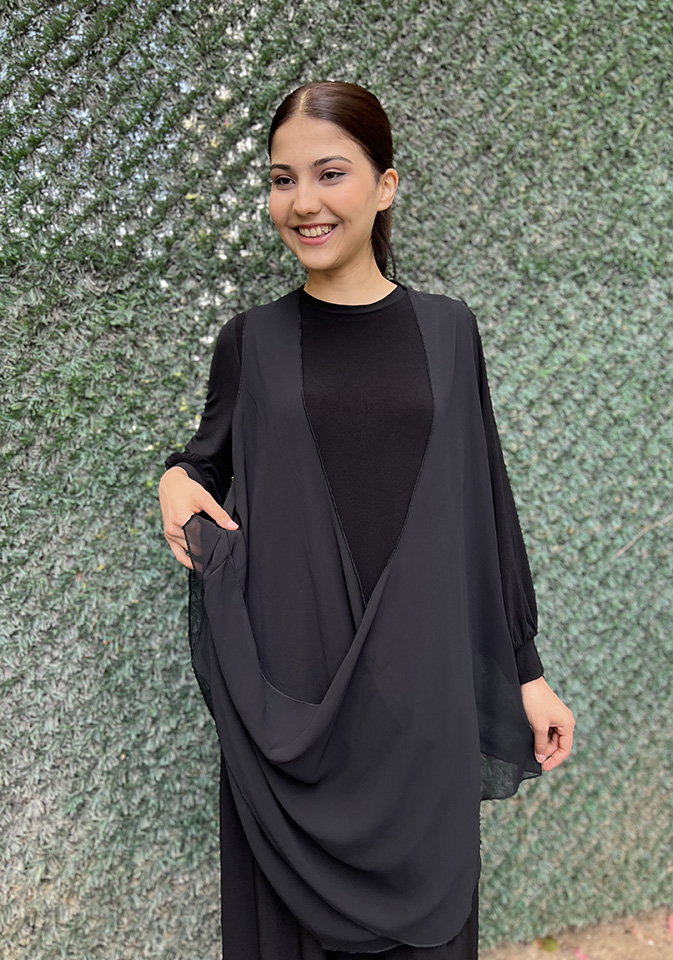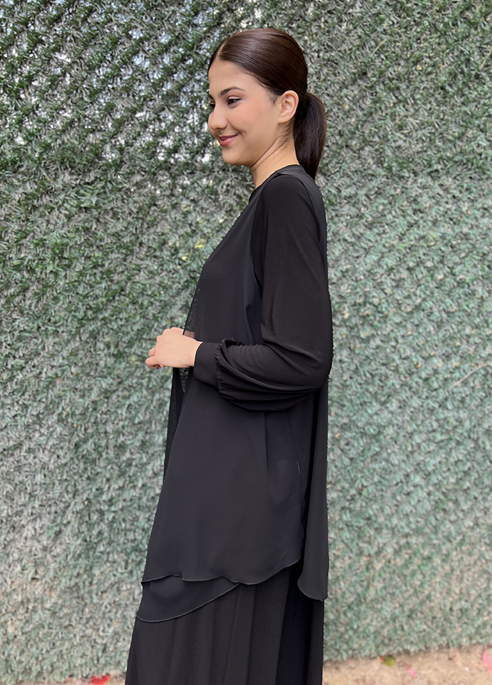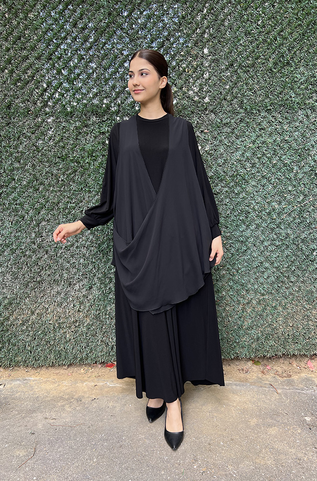 Noi Jarse Şifon Yelekli Elbise SİYAH