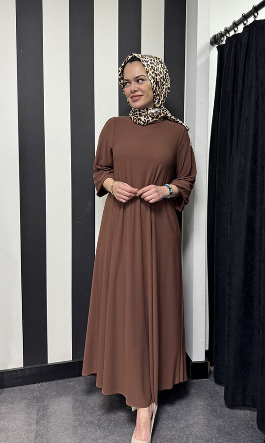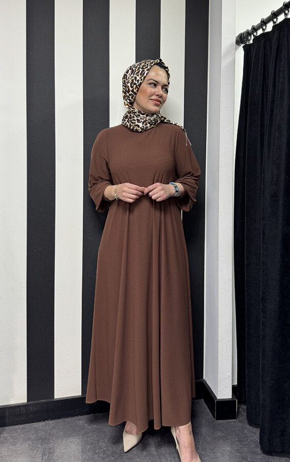 MissWhence Önden Fermuarlı Çiçekli Elbise KAHVE