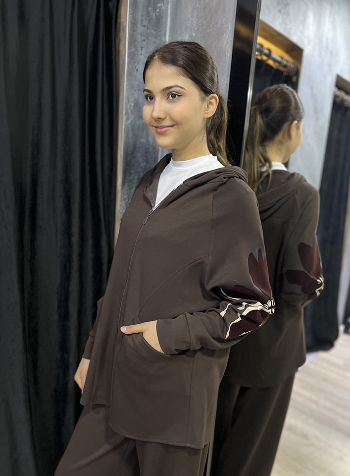 Noi Modal Kapşonlu Fermuarlı Eşofman Üstü KAHVERENGİ