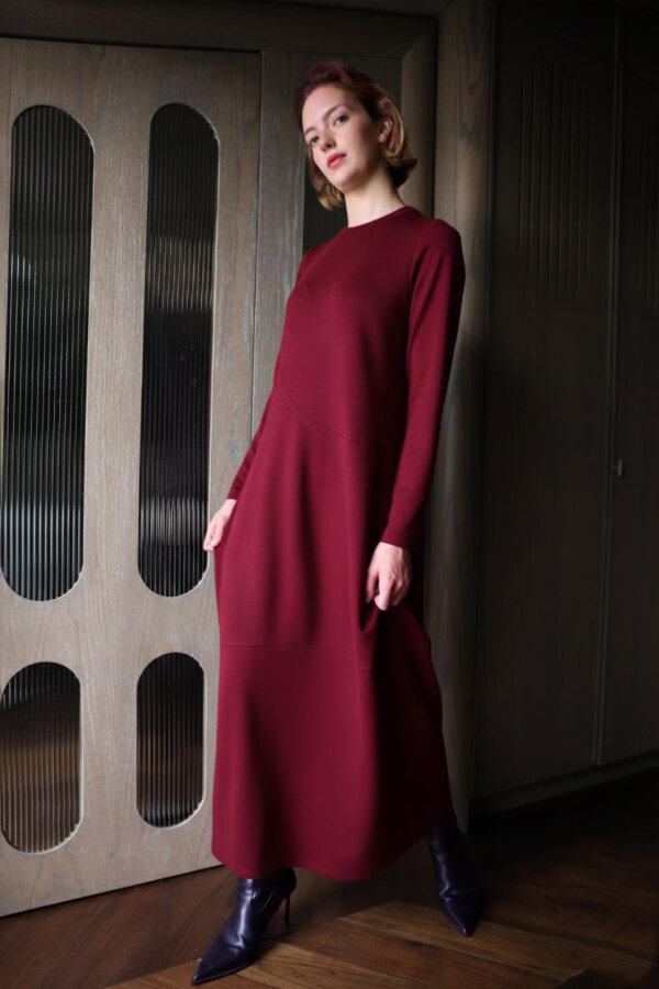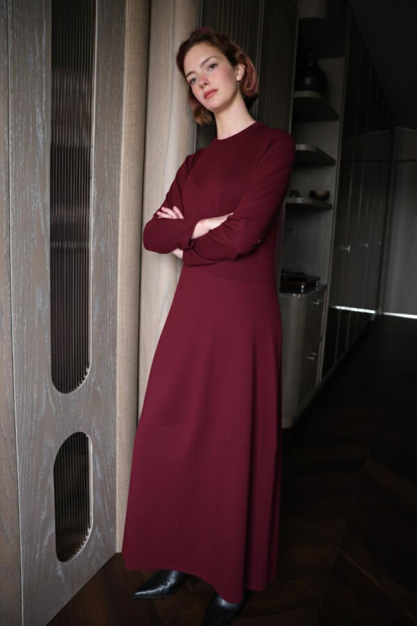 Noi Modal Karışık Yuvarlak Kuplu Elbise BORDO
