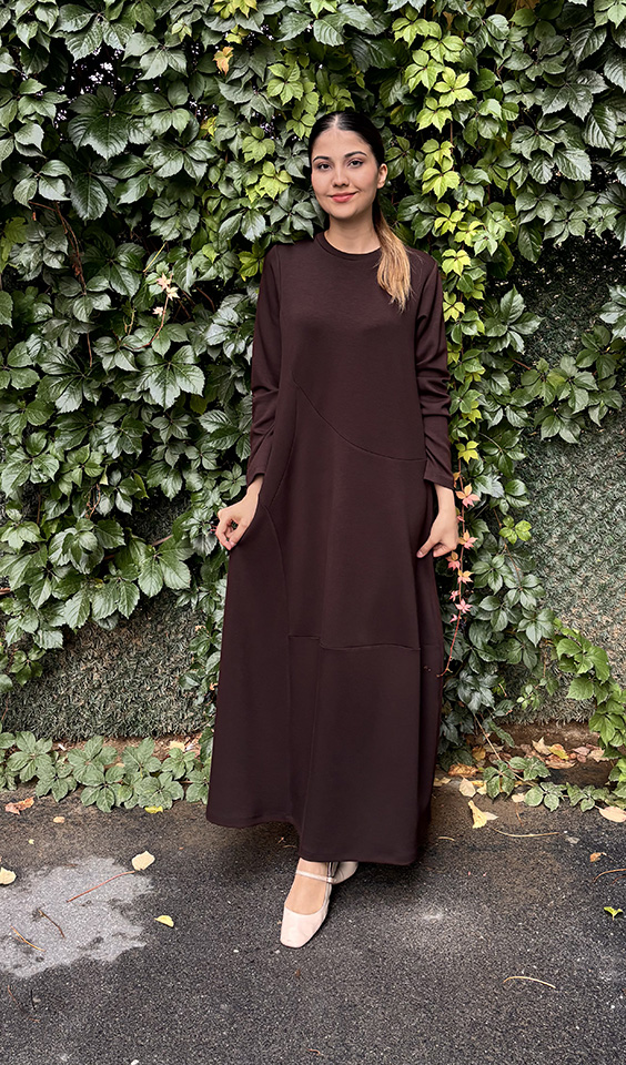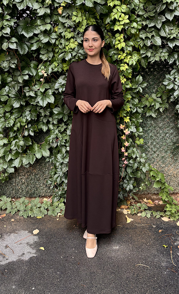 Noi Modal Karışık Yuvarlak Kuplu Elbise KAHVERENGİ
