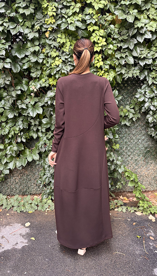 Vuu Önü Nervürlü Yarasa Kol Elbise Acı Kahve