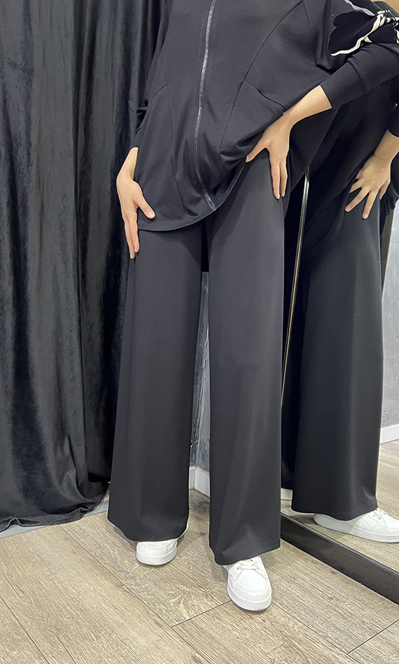 Miss Dalida Yanları Beyaz Bol Paça Pantolon BLACK