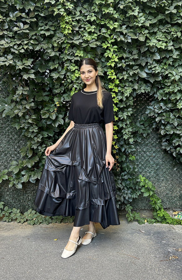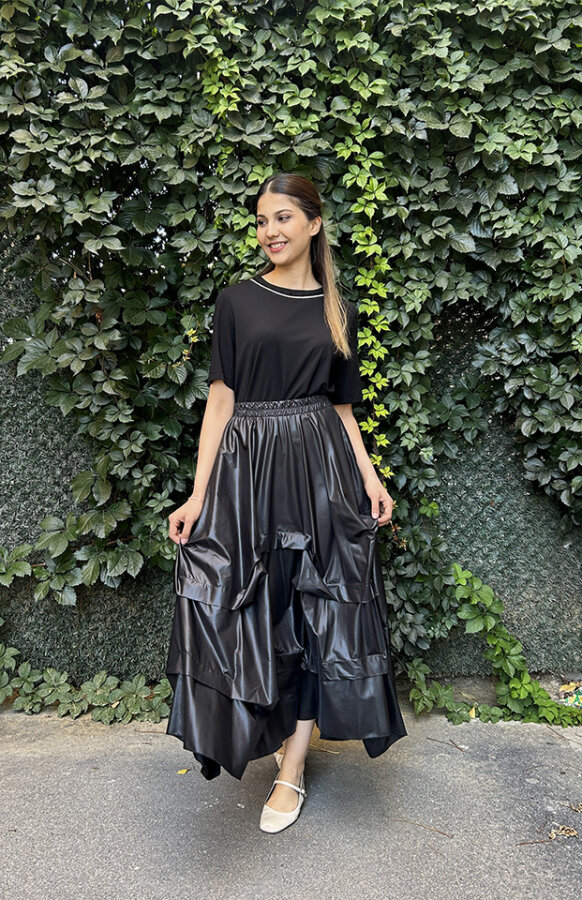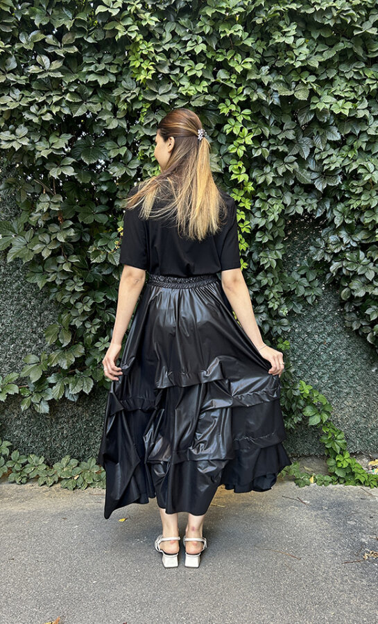 Miss Dalida Beli Lastikli Cupra Etek BLACK