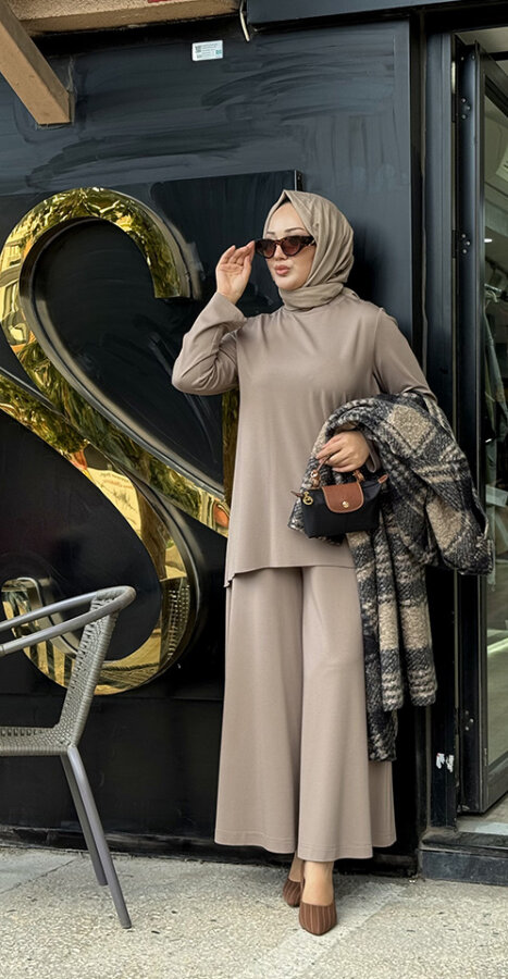Noi Rayon Modal Geniş Paça Pantolon Etek VİZON