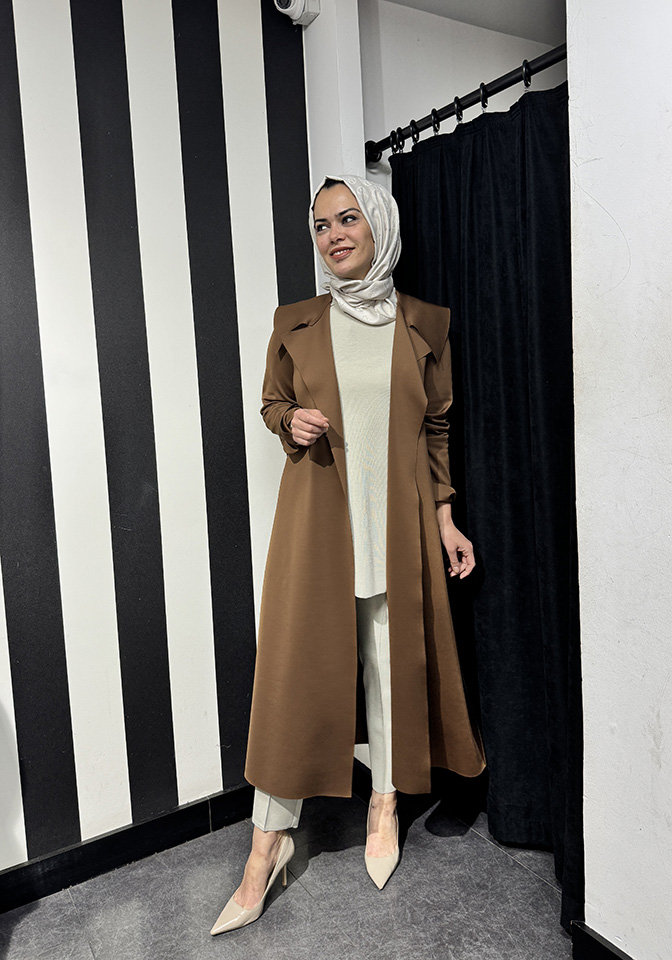 Noi Scuba Arkası Kemerli Ceket KAHVERENGİ