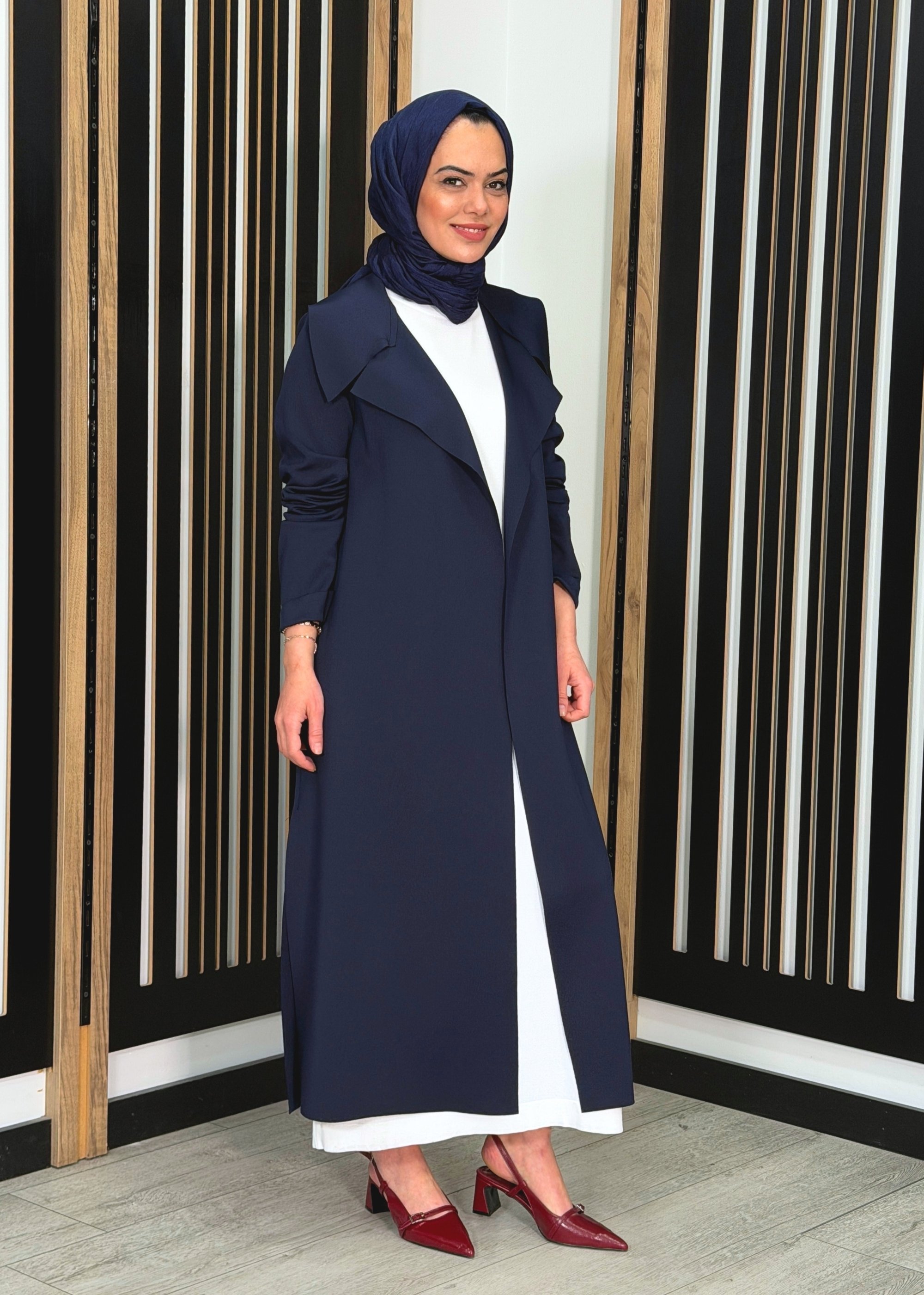 Miss Dalida Gömlek Yaka Denim Detaylı Uzun Ceket İNDİGO